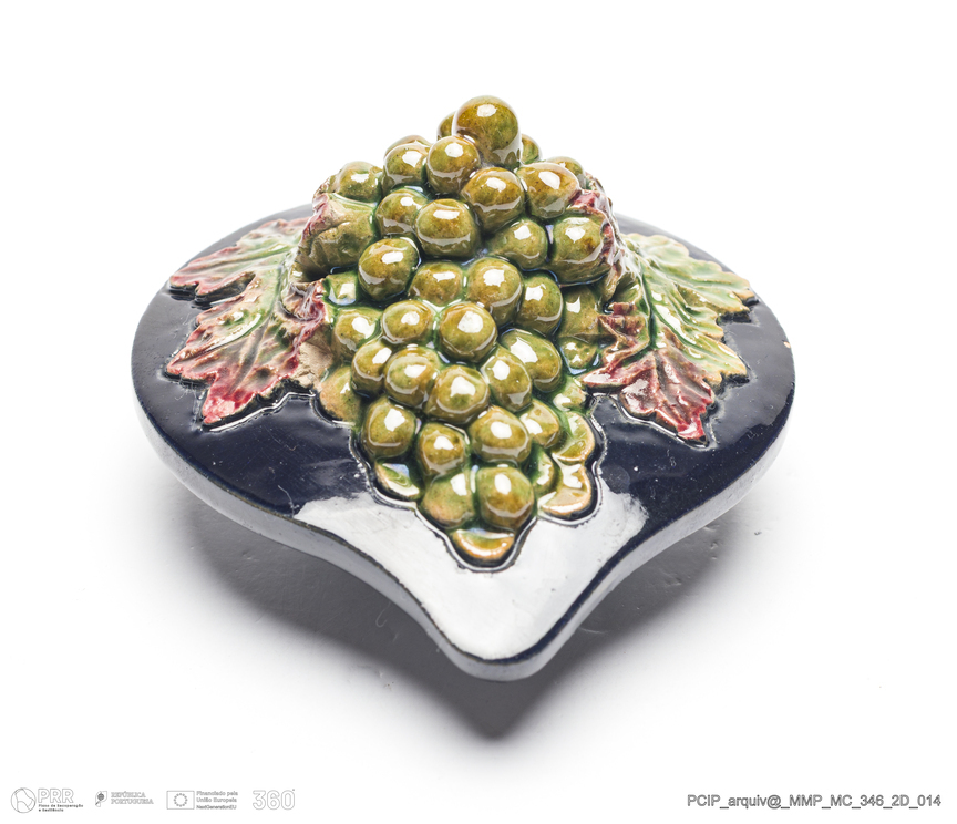 Matéria/Técnica: Barro vermelho modelado e moldado. Vidrado polícromo: azul, verde, castanho e amarelo; Cronologia: 1907; Autoria: Manuel Gustavo Bordalo Pinheiro / Fábrica de Faianças das Caldas da Rainha, Portugal; Dimensões (cm): Altura: 26; Largura: 15.