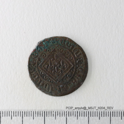 - Matéria/Técnica: Cu - Cobre; Cronologia: Desconhecida; Centro emissor: Desconhecido; Dimensões (mm): 27,48; Peso (g): 2,75.