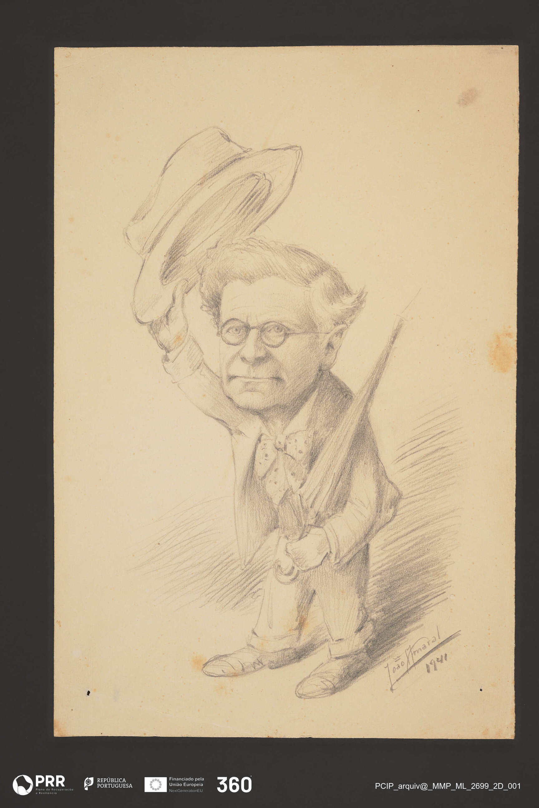 Matéria/Técnica: Desenho a lápis; Cronologia: 1941; Autoria: Amaral, João (1874 - 1955); Dimensões (cm): Altura: 24,5 x Largura: 16,4.