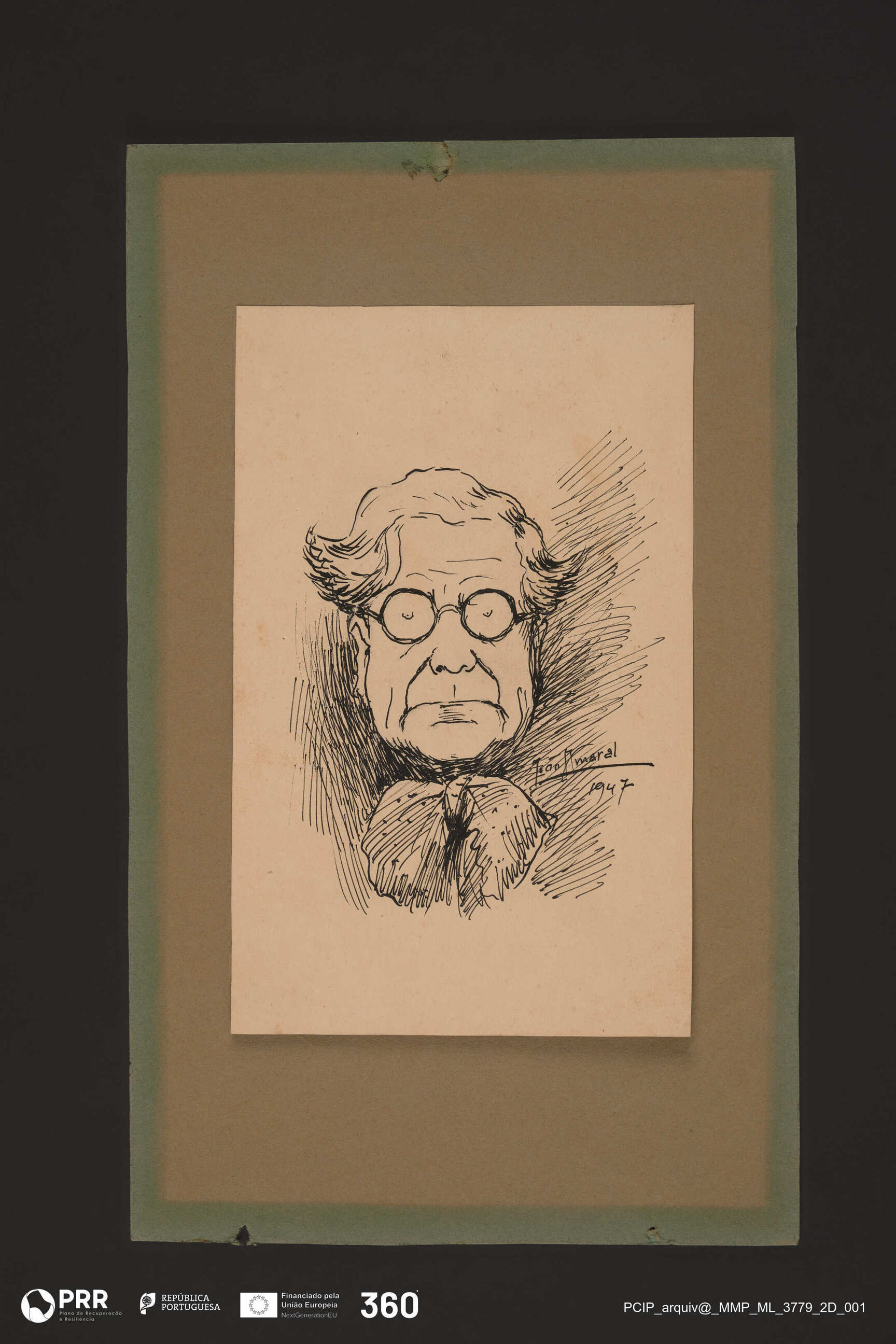 Matéria/Técnica: Desenho à pena; Cronologia: 1947; Autoria: Amaral, João (1874 - 1955); Dimensões (cm): Altura: 18,2 x Largura: 11,5.
