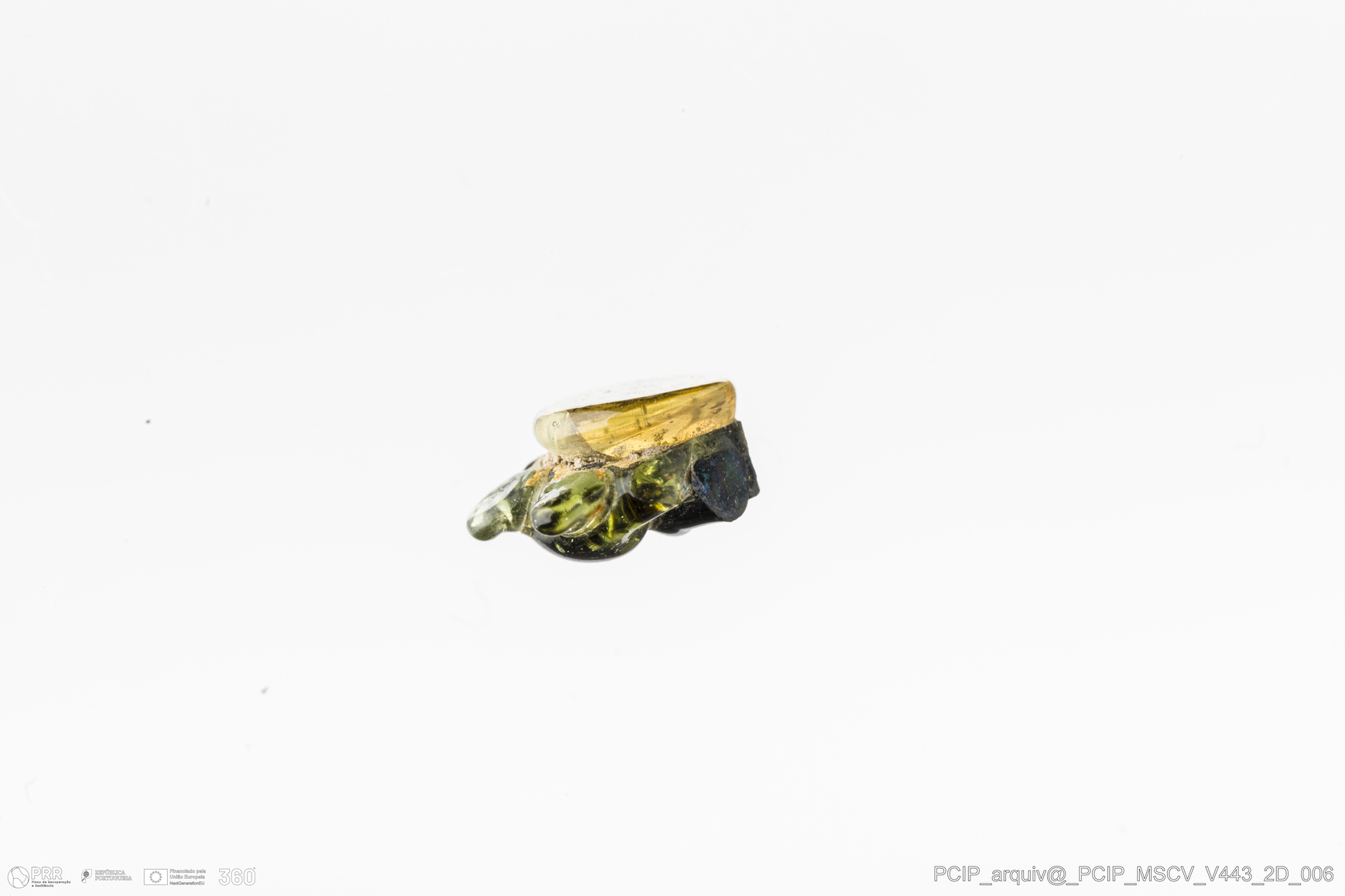 Matéria/Técnica: Vidro; Cronologia: Século XVII; Autoria: Desconhecida; Dimensões: Largura: 5mm; Altura: 8mm.