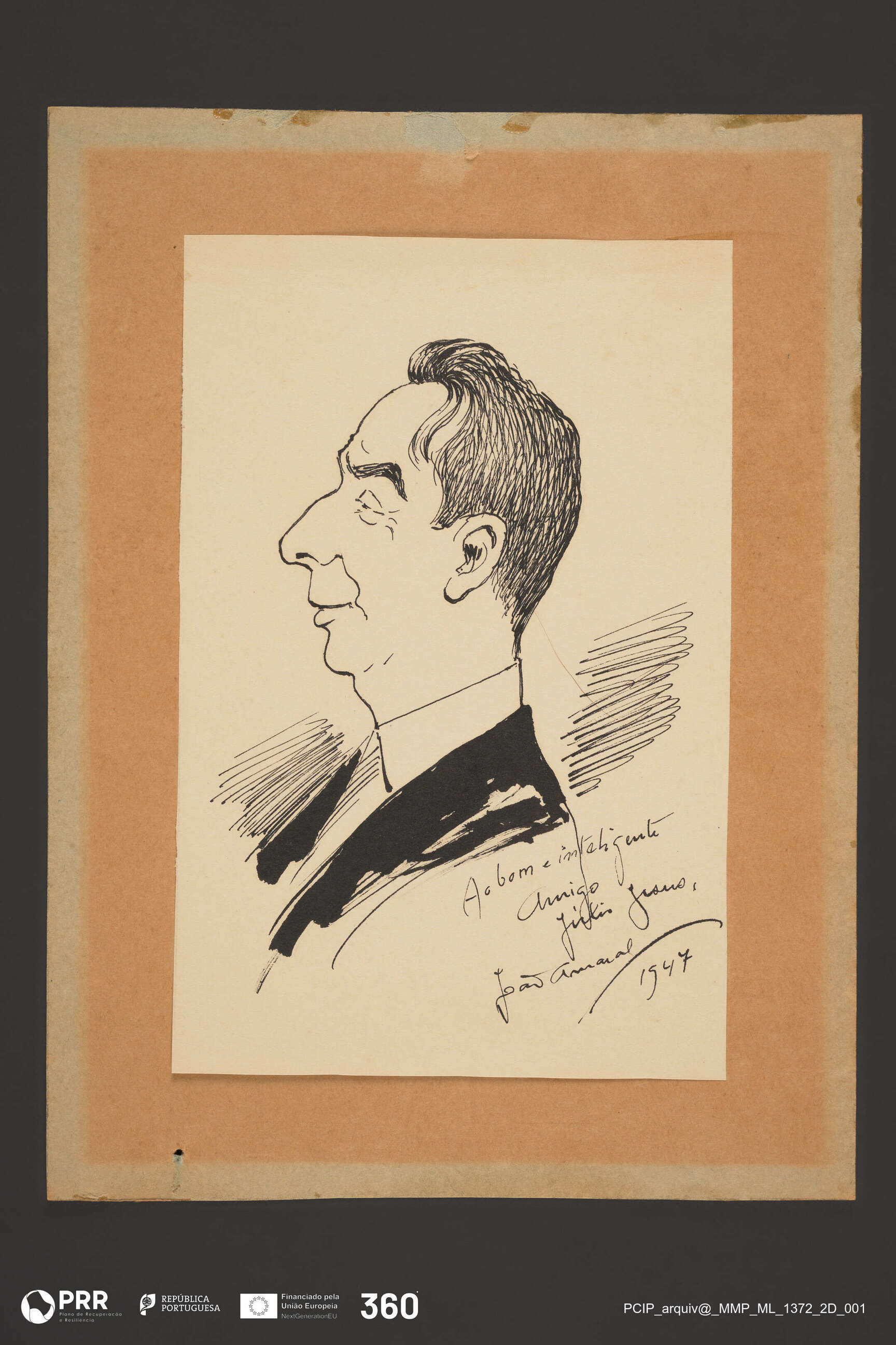 Matéria/Técnica: Desenho à pena; Cronologia: 1947; Autoria: Amaral, João (1874 - 1955); Dimensões (cm): Altura: 18,5 x Largura: 12,2.