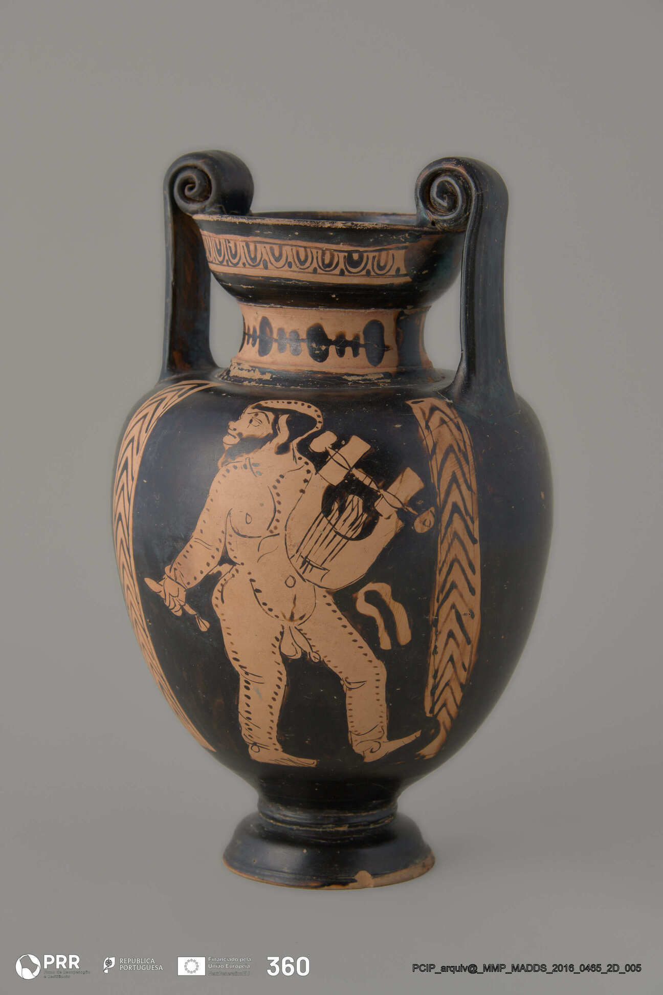 Matéria/Técnica: Cerâmica; Cronologia: Cerca de 450 a.C; Autoria: Desconhecida; Dimensões (cm): 22 x 13 x 13.