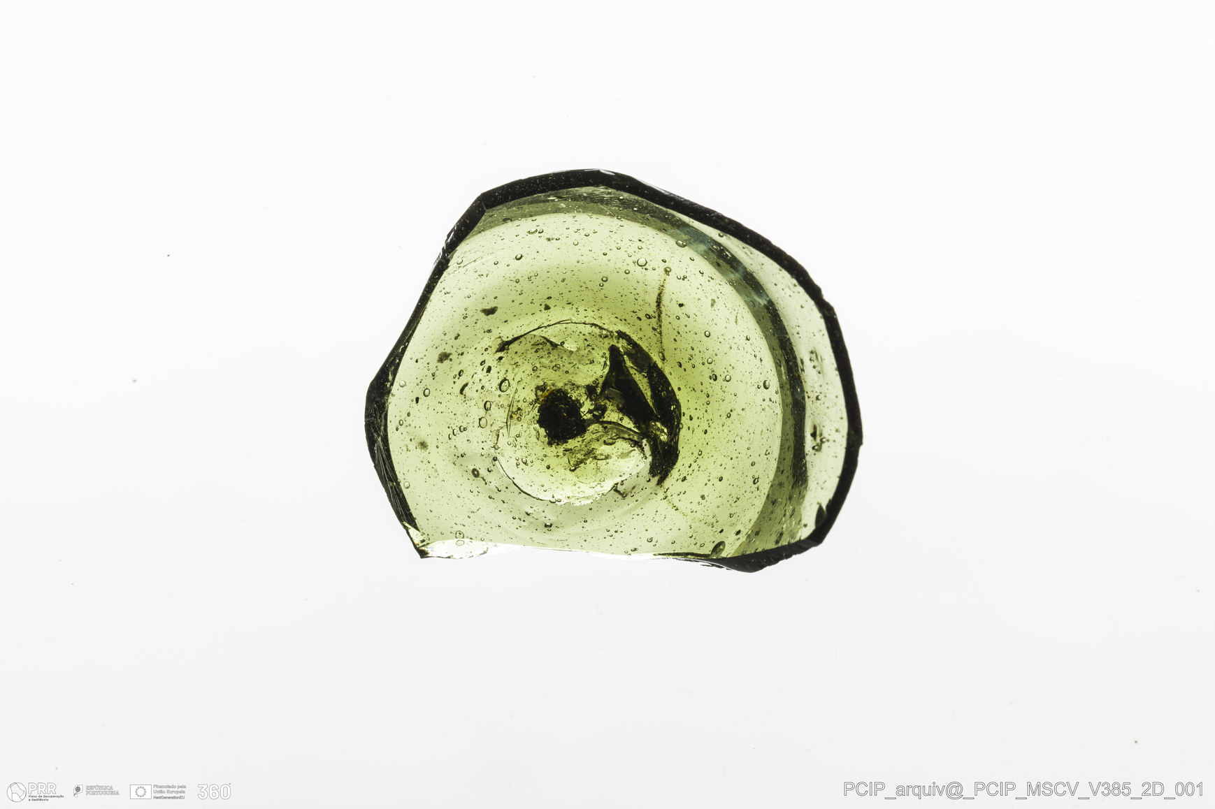 Matéria/Técnica: Vidro; Cronologia: Século XVII; Autoria: Desconhecida; Dimensões: Diâmetro base: 36mm.