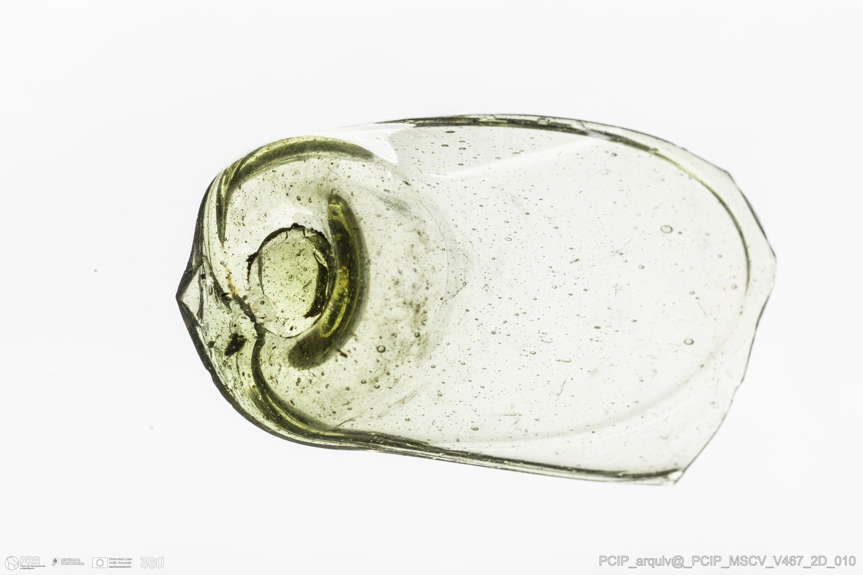 Matéria/Técnica: Vidro; Cronologia: Século XVII; Autoria: Desconhecida; Dimensões: Diâmetro Base: 31mm.