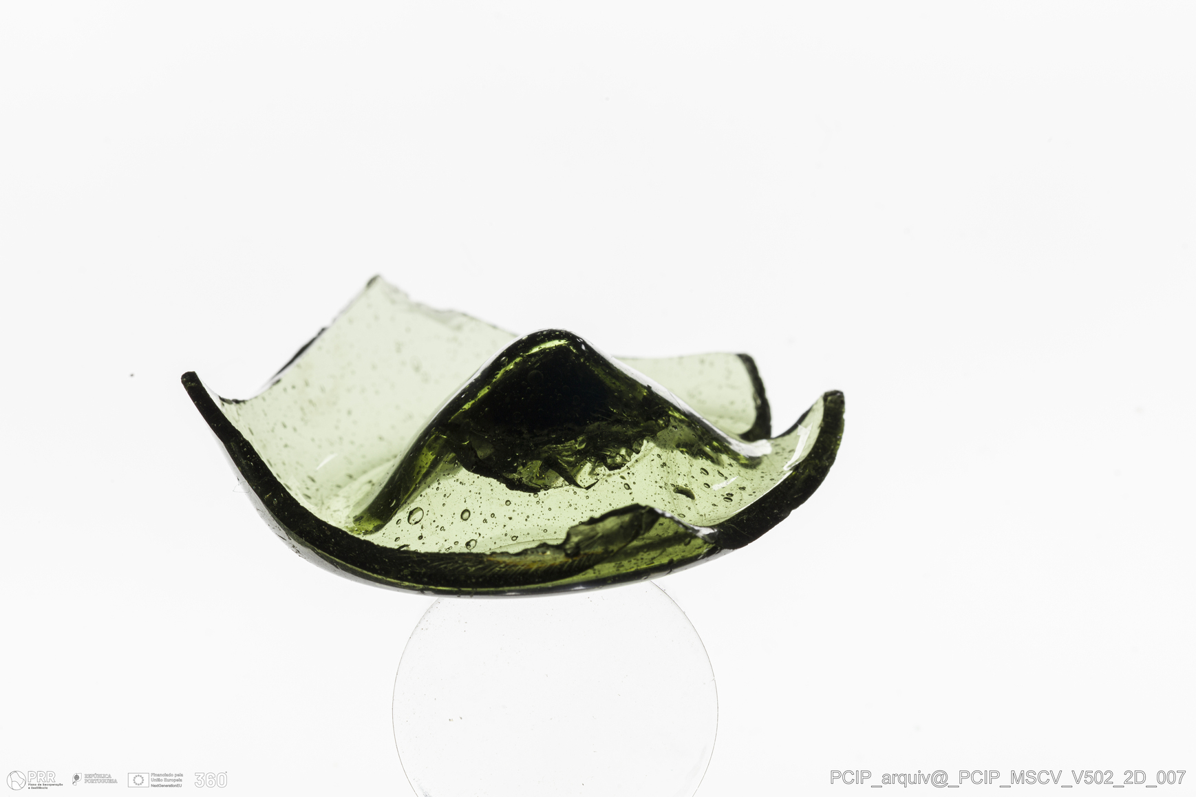 Matéria/Técnica: Vidro; Cronologia: Século XVII; Autoria: Desconhecida; Dimensões: Altura: 10mm; Largura: 39mm.