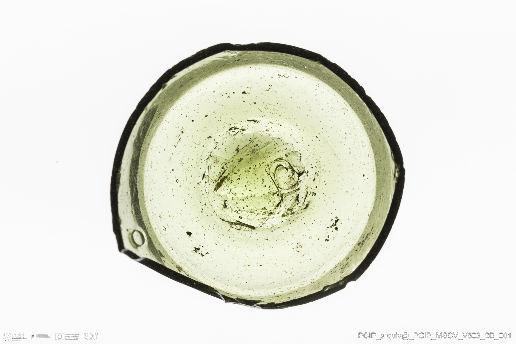 Matéria/Técnica: Vidro; Cronologia: Século XVII; Autoria: Desconhecida; Dimensões: Diâmetro Base: 32mm.