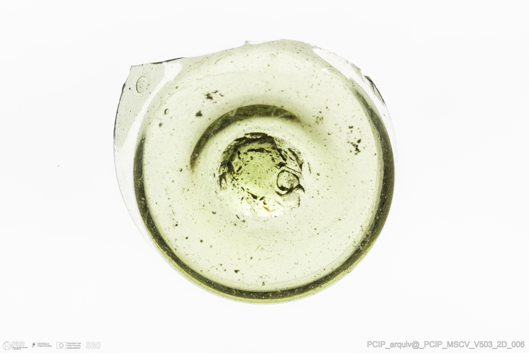 Matéria/Técnica: Vidro; Cronologia: Século XVII; Autoria: Desconhecida; Dimensões: Diâmetro Base: 32mm.