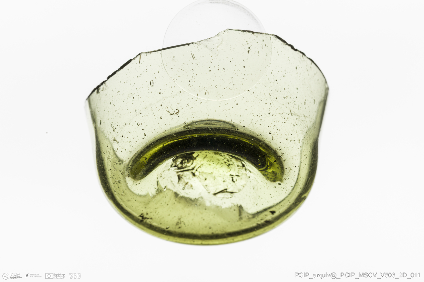 Matéria/Técnica: Vidro; Cronologia: Século XVII; Autoria: Desconhecida; Dimensões: Diâmetro Base: 32mm.
