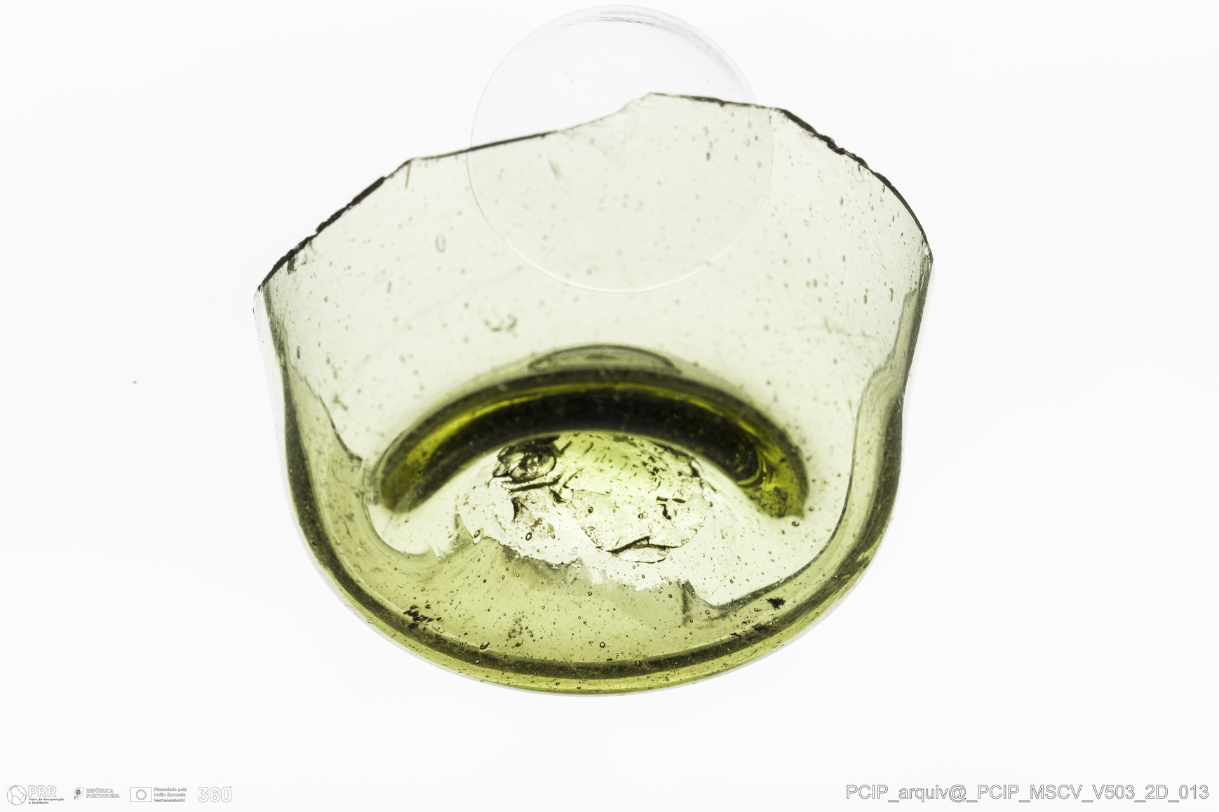 Matéria/Técnica: Vidro; Cronologia: Século XVII; Autoria: Desconhecida; Dimensões: Diâmetro Base: 32mm.