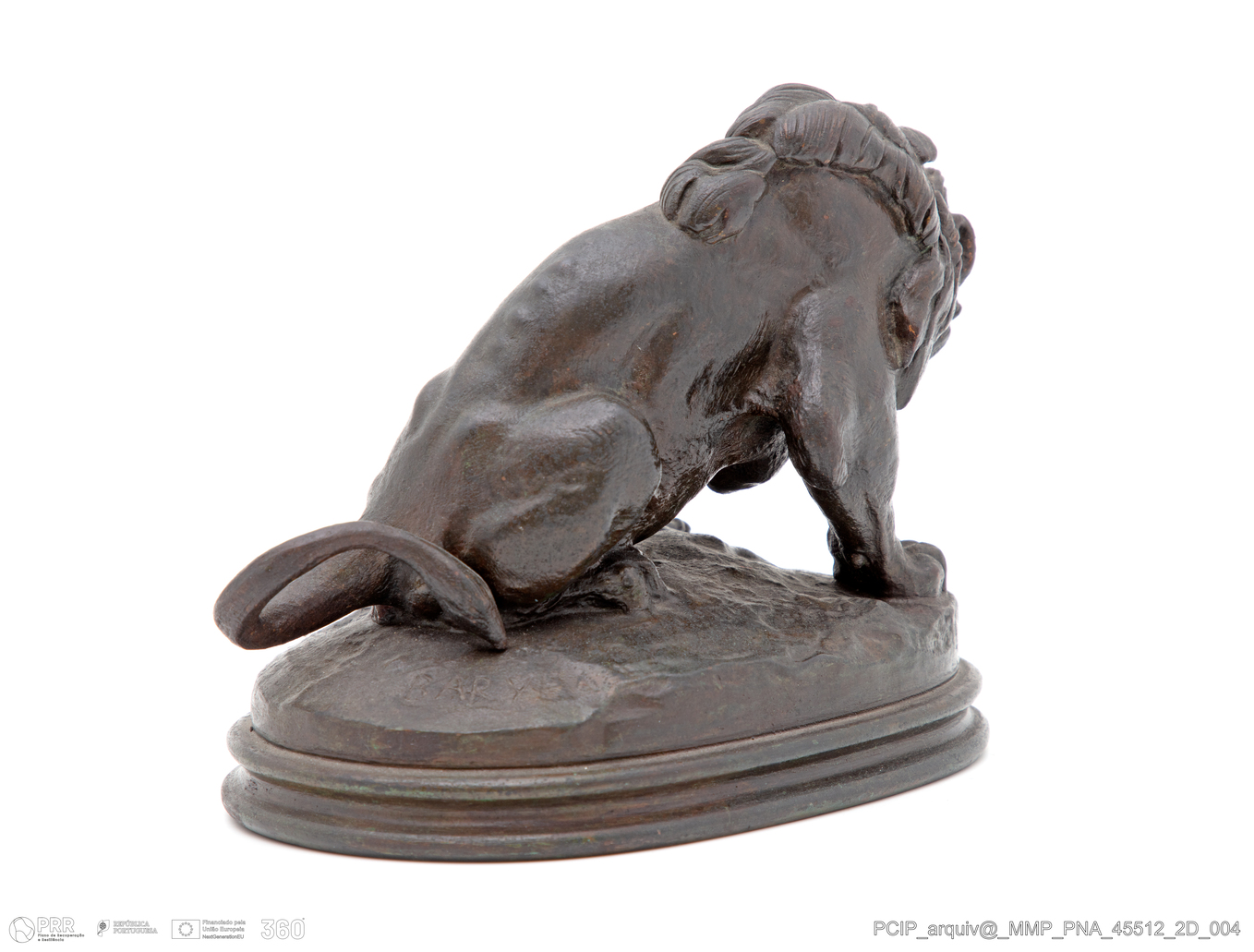 Matéria/Técnica: Bronze; Cronologia: Século XIX; Autoria: Barye, Antoine-Louis (1795-1875); Dimensões (cm): Altura: 12; Largura: 16; Profundidade: 11.