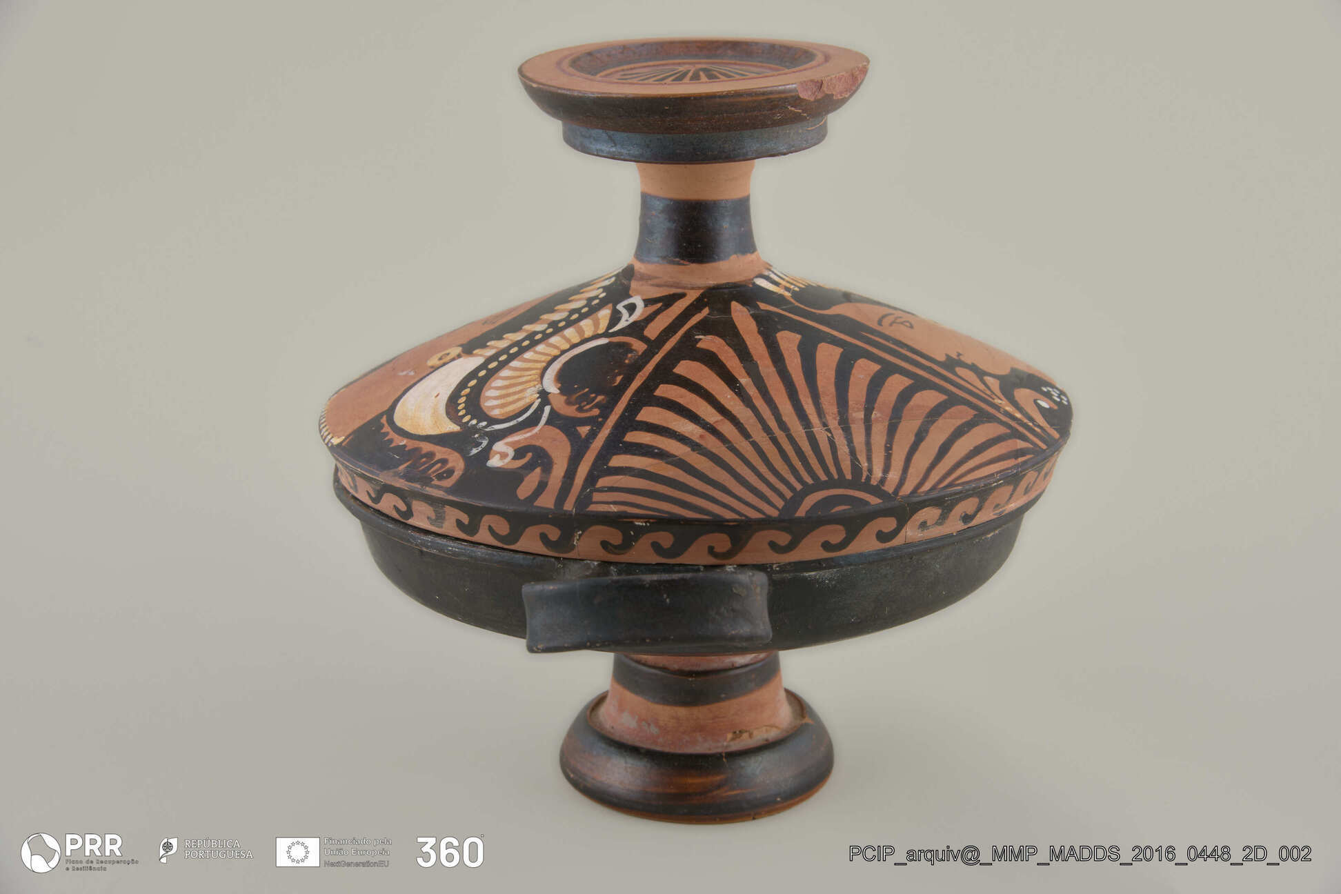 Matéria/Técnica: Cerâmica; Cronologia: Cerca 350 - 325 a.C; Autoria: Desconhecida; Dimensões (cm): 17 x 23 x 17.