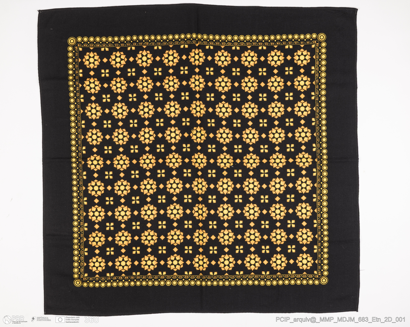 Matéria/Técnica: Lã e outras fibras; Cronologia: Séc. XX; Autoria: Desconhecida; Dimensões: Altura: 101 cm x Largura: 101 cm.