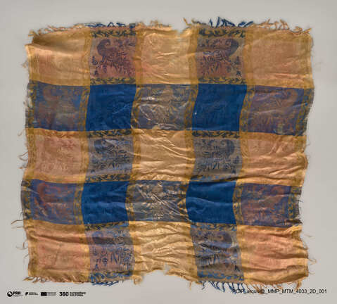 Matéria/Técnica: Seda; Cronologia: Séc. XX; Autoria: Desconhecida; Dimensões (cm): 84 x 80 cm.