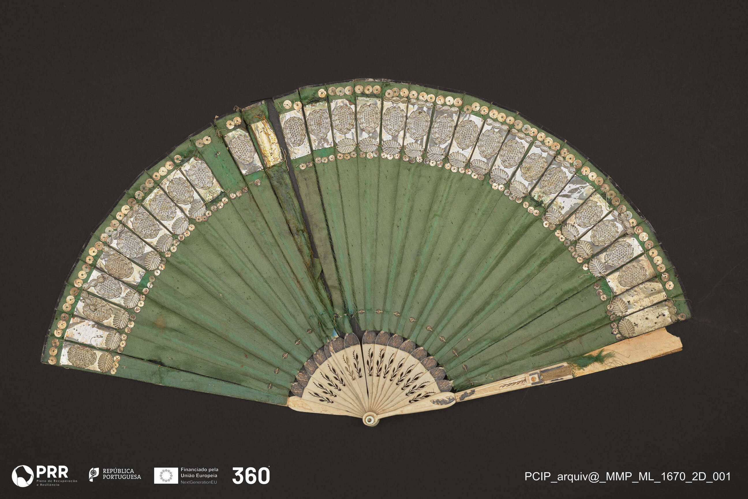 Matéria/Técnica: Aplicações metálicas prateadas e lantejoulas; Cronologia: Século XIX; Autoria: Desconhecida; Dimensões (cm): Altura: 20 x Largura: 38.