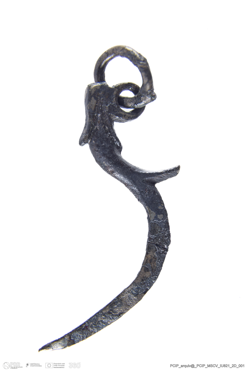 Matéria/Técnica: Metal; Cronologia: Século XVII; Autoria: Desconhecida; Dimensões: Comprimento: 38mm; Largura: 11,5mm; Espessura: 2mm.