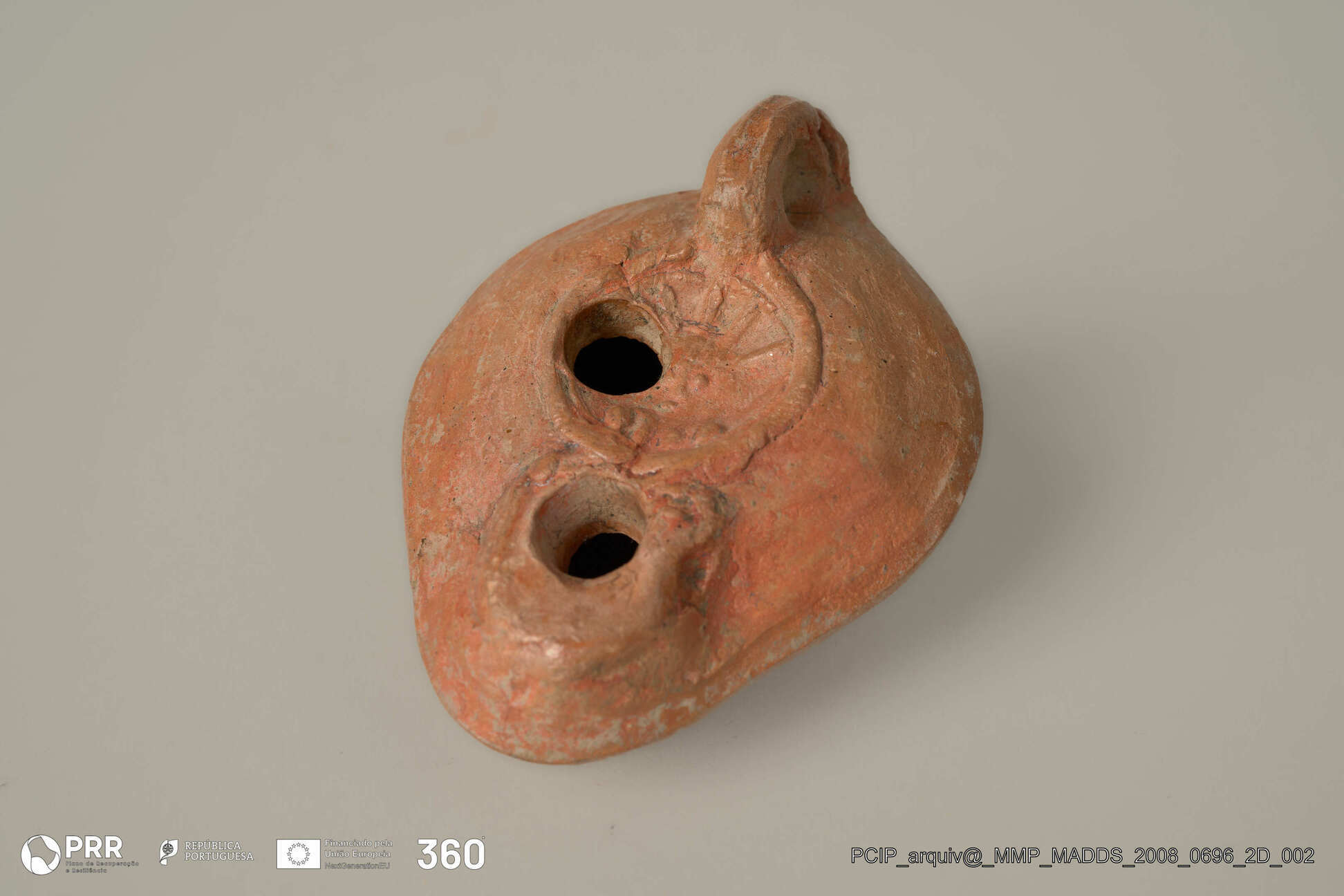 Matéria/Técnica: Cerâmica; Cronologia: Romano; Autoria: Desconhecida; Dimensões (cm): 2,4 x 4,7 x 6,4.