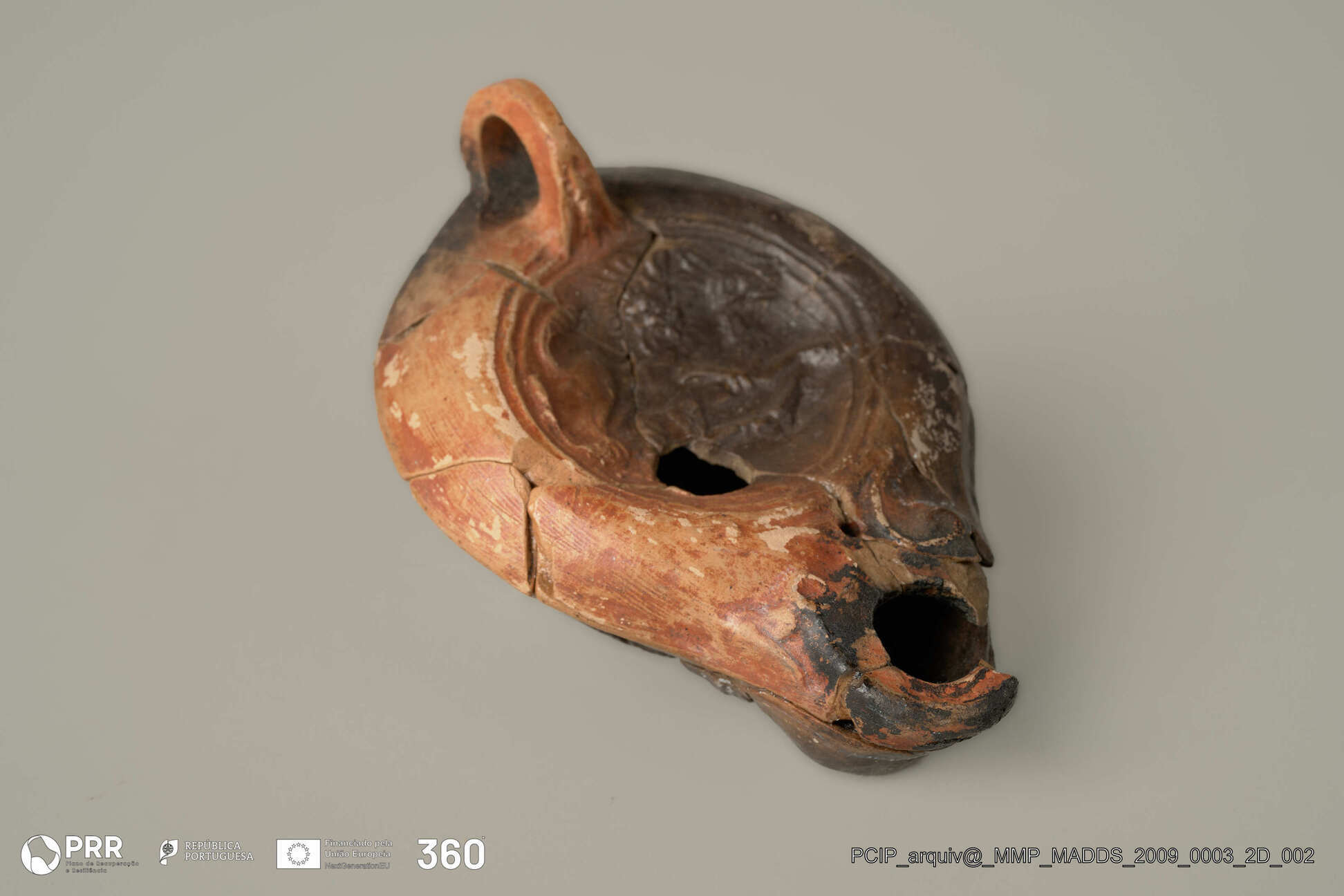 Matéria/Técnica: Cerâmica; Cronologia: Romano; Autoria: Desconhecida; Dimensões (cm): 4 x 6,3 x 9,2.