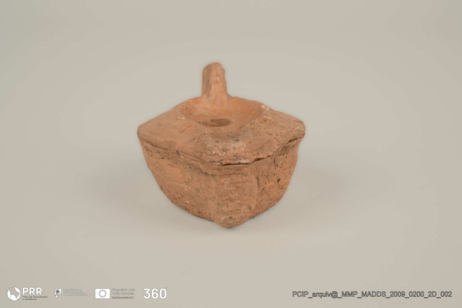 Matéria/Técnica: Cerâmica; Cronologia: Romano; Autoria: Desconhecida; Dimensões (cm): 3,8 x 4,9 x 7,2.