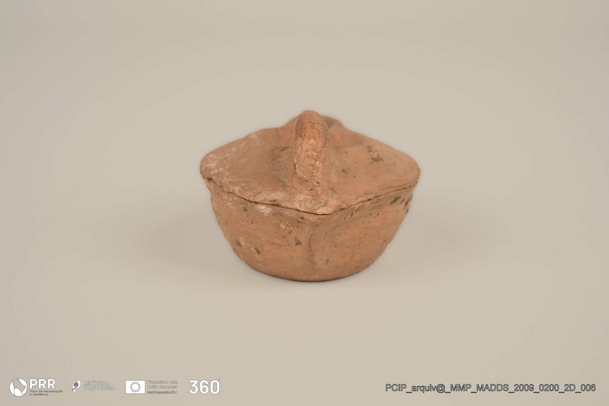 Matéria/Técnica: Cerâmica; Cronologia: Romano; Autoria: Desconhecida; Dimensões (cm): 3,8 x 4,9 x 7,2.