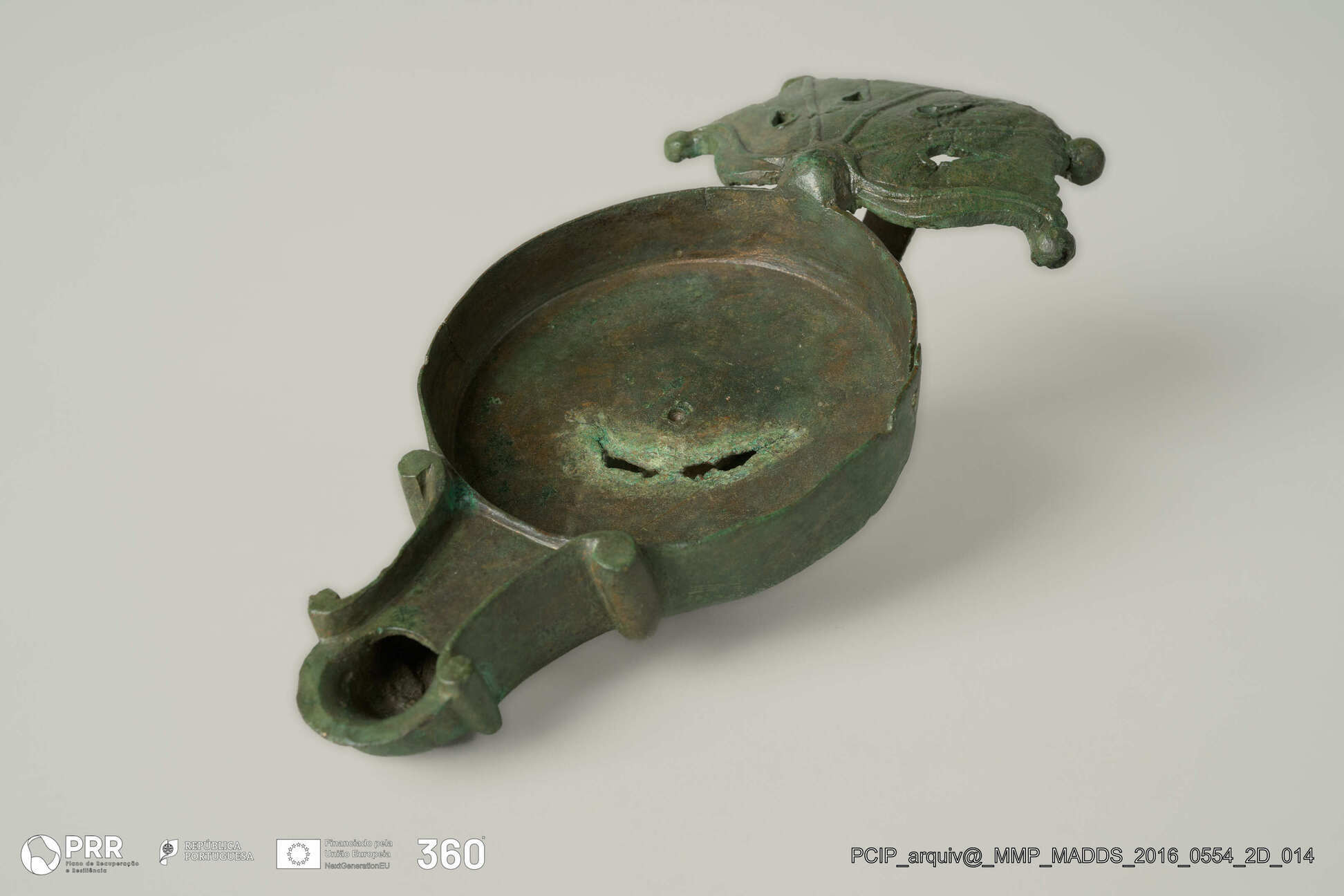 Matéria/Técnica: Bronze; Cronologia: Século II d.C; Autoria: Desconhecida; Dimensões (cm): 4 x 8 x 19.
