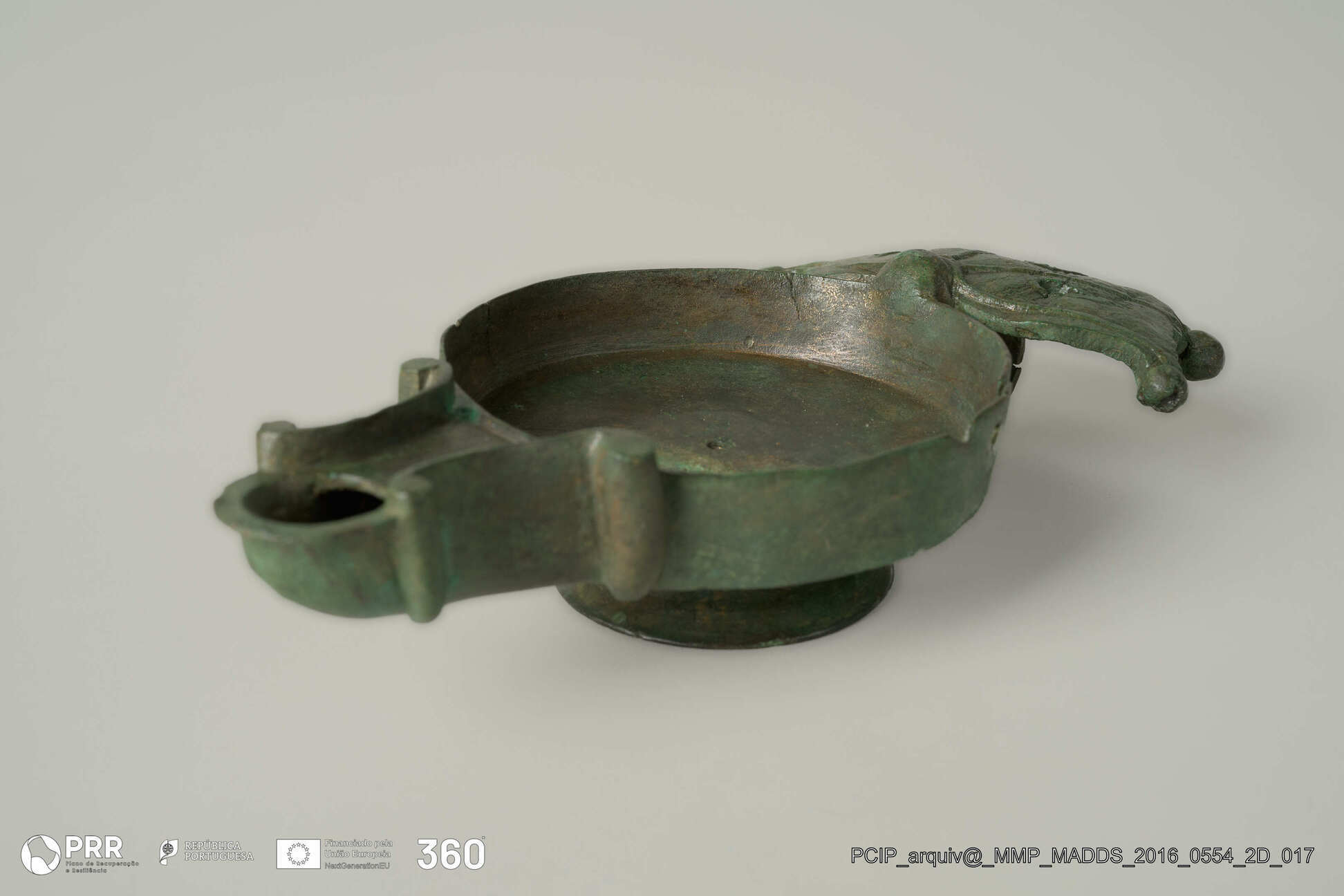 Matéria/Técnica: Bronze; Cronologia: Século II d.C; Autoria: Desconhecida; Dimensões (cm): 4 x 8 x 19.