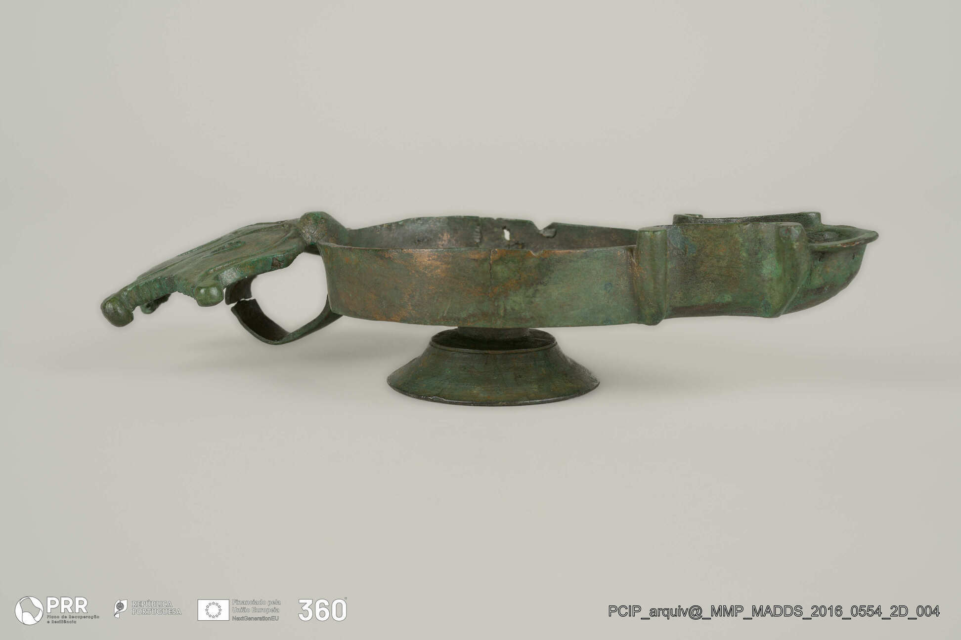 Matéria/Técnica: Bronze; Cronologia: Século II d.C; Autoria: Desconhecida; Dimensões (cm): 4 x 8 x 19.