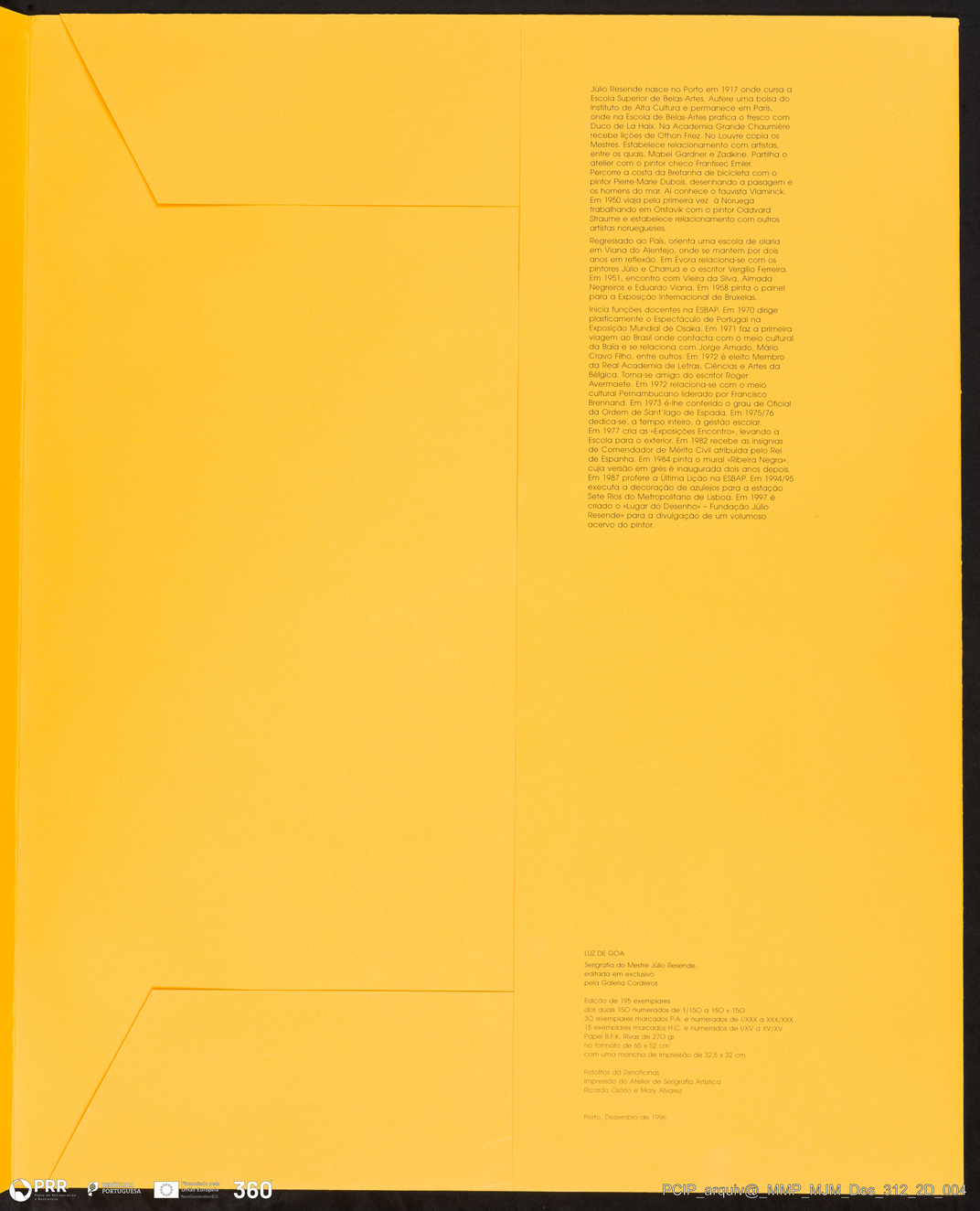 Matéria/Técnica: Serigrafia; Cronologia: 1996; Autoria: Júlio Resende; Dimensões: 65 x 52 cm.