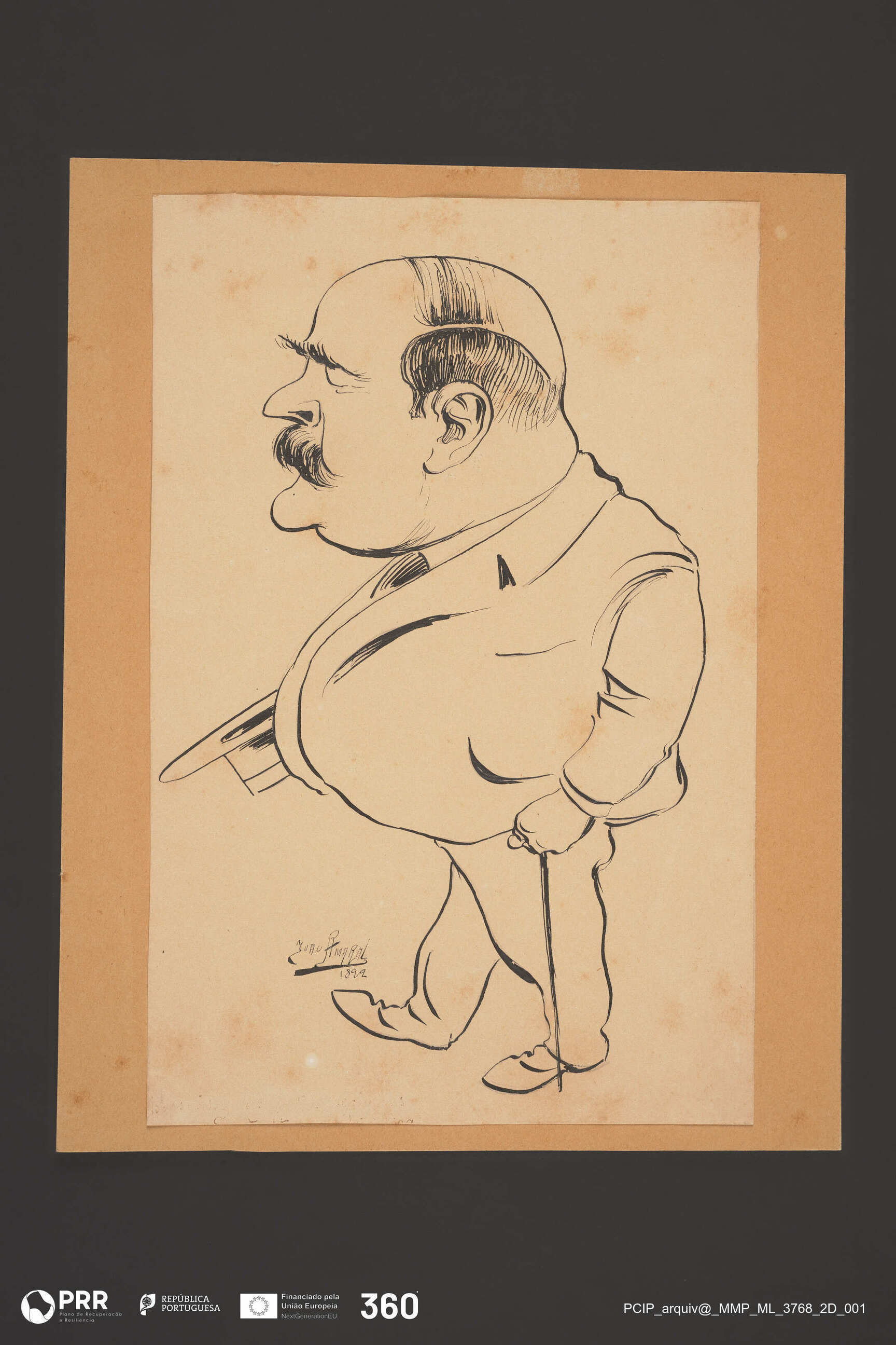 Matéria/Técnica: Desenho à pena; Cronologia: 1892; Autoria: Amaral, João (1874 - 1955); Dimensões (cm): Altura: 22,6 x Largura: 14,9.
