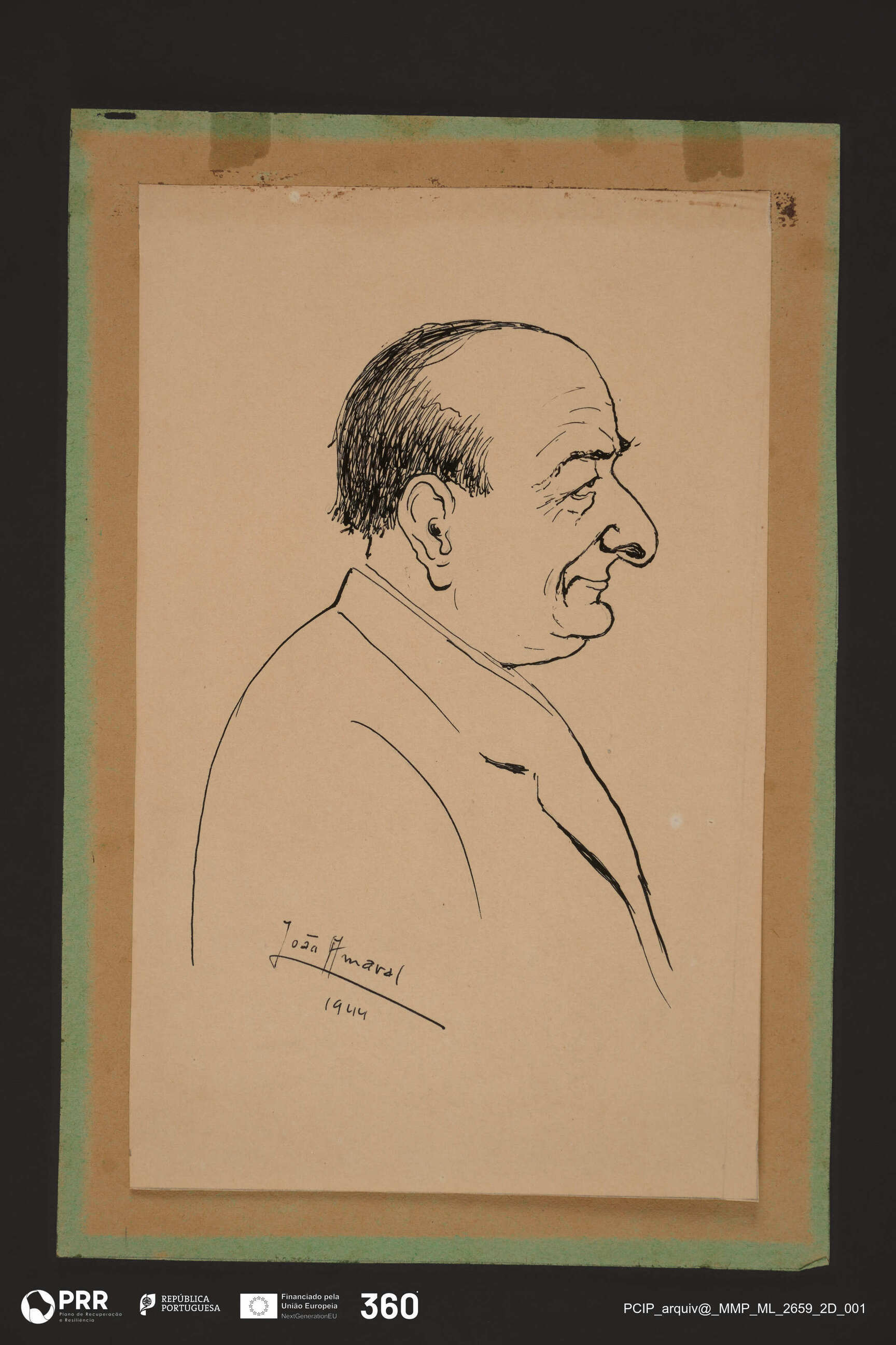 Matéria/Técnica: Desenho à pena; Cronologia: 1944; Autoria: Amaral, João (1874 - 1955); Dimensões (cm): Altura: 21 x Largura: 13,2.