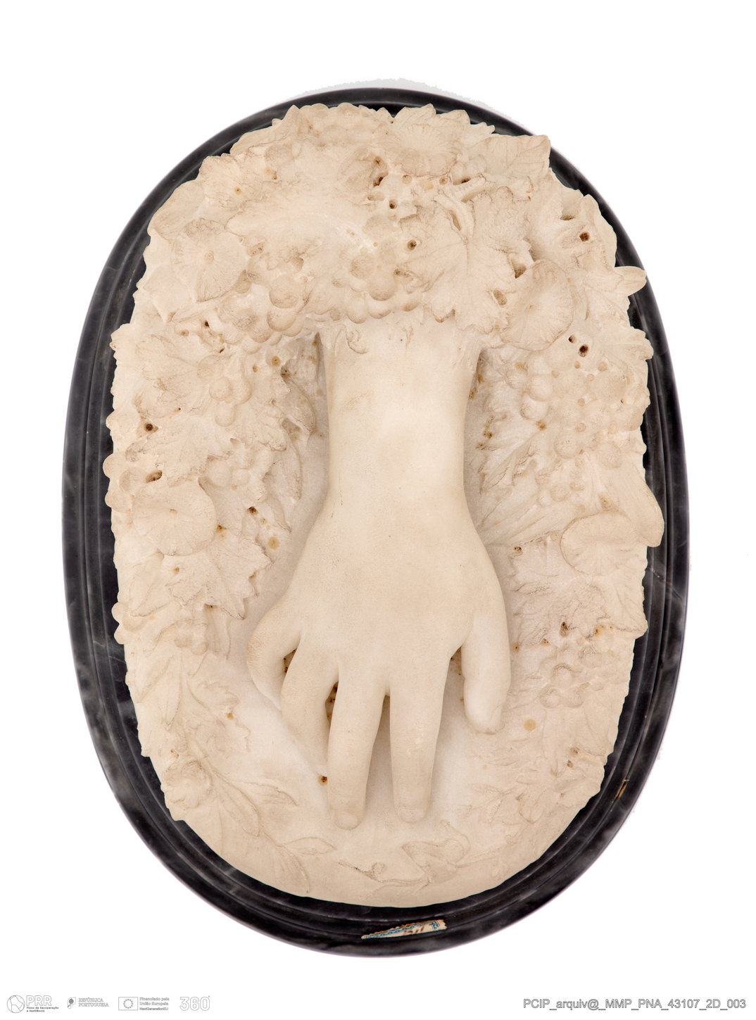 Matéria/Técnica: Mármore; Cronologia: 1869; Autoria: Sighinolfi, Cesare (1835-1903) atribuível; Dimensões (cm): Altura: 7,6; Largura: 17; Comprimento: 24.