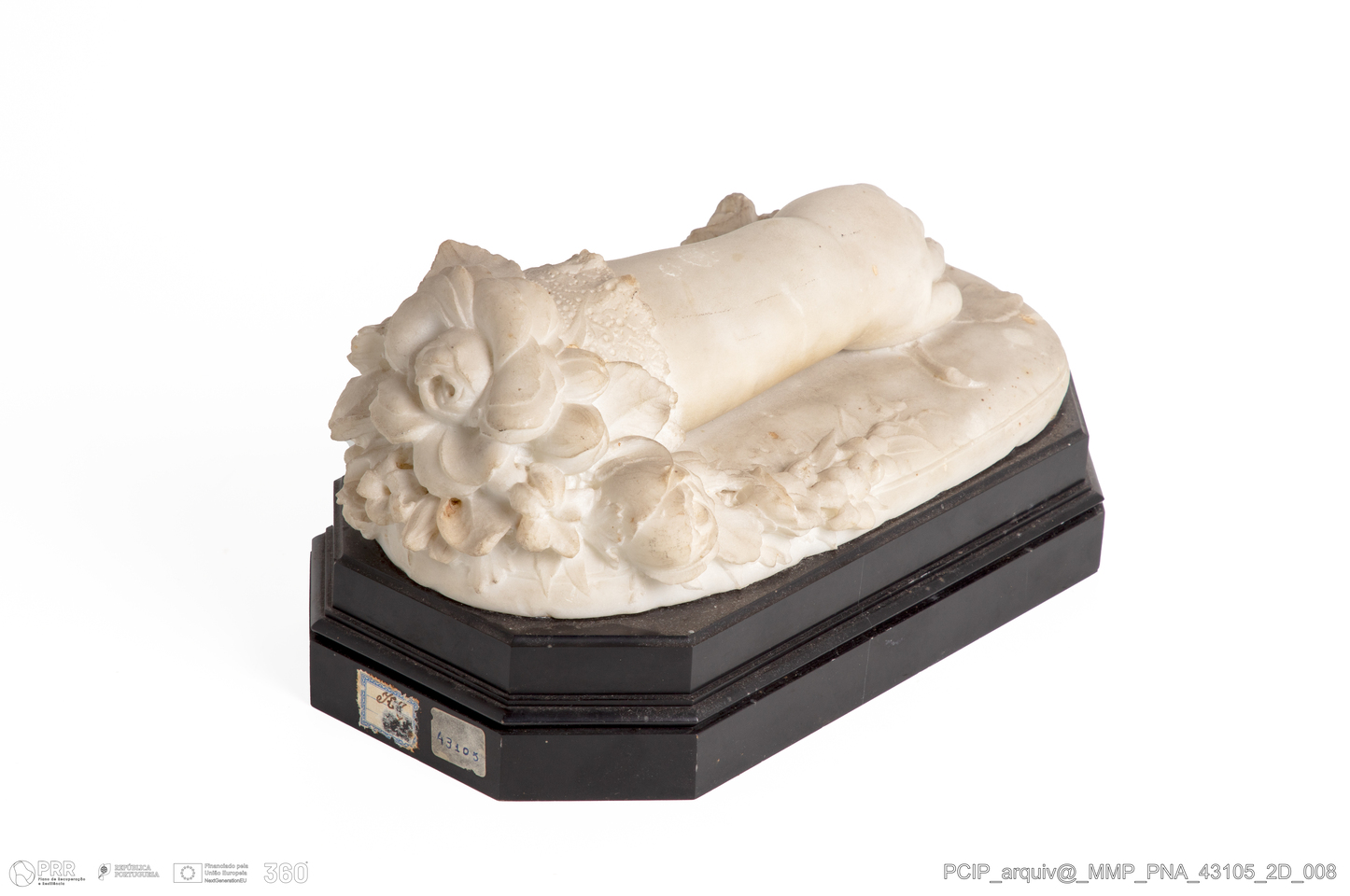 Matéria/Técnica: Mármore de Carrara; mármore preto; Cronologia: 1868; Autoria: Sighinolfi, Cesare (1835-1903) atribuível; Dimensões (cm): Altura: 9,5; Largura: 15; Comprimento: 16.