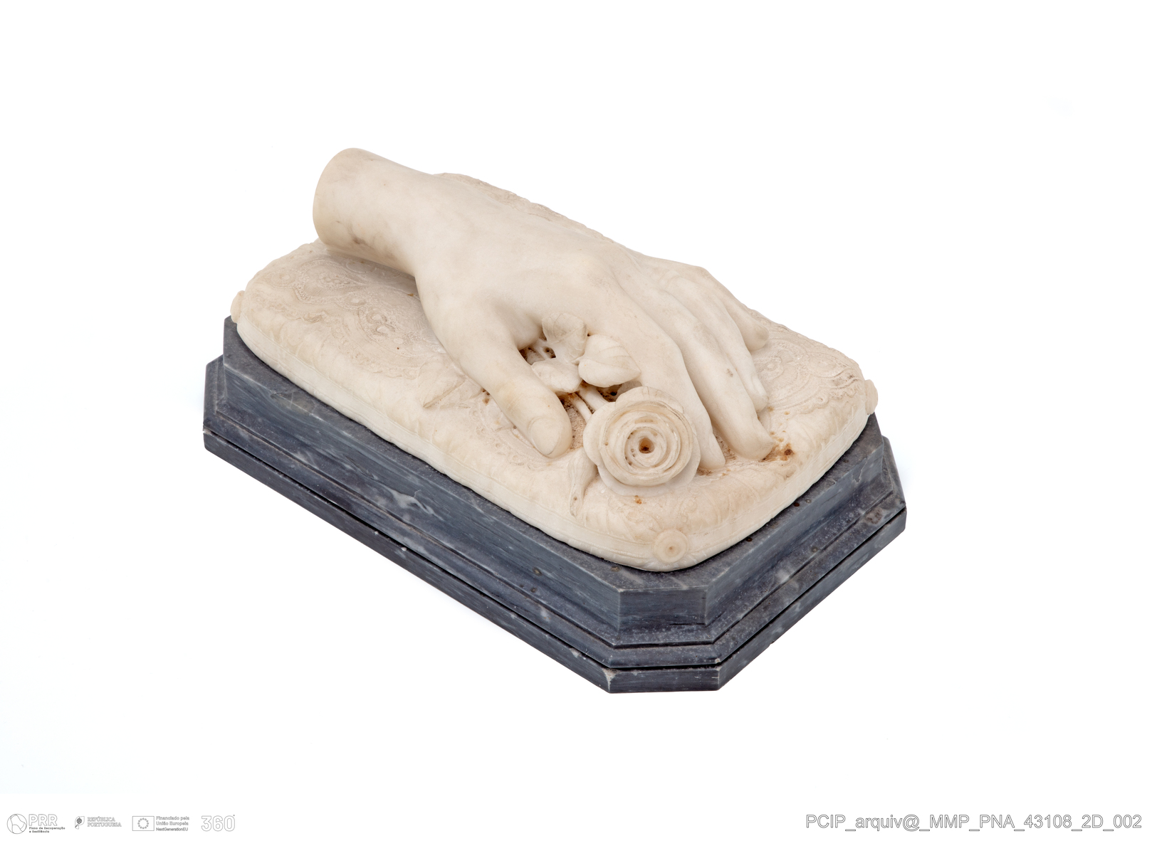 Matéria/Técnica: Mármore; Cronologia: Século XIX; Autoria: Desconhecida; Dimensões (cm): Altura: 14 cm; Largura: 19 cm; Comprimento: 28 cm.