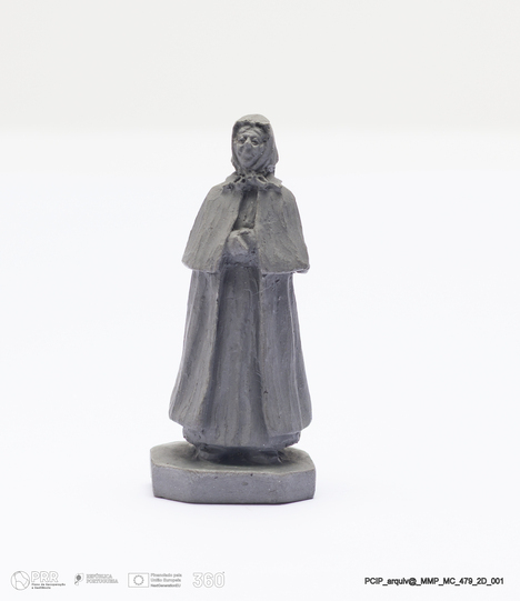 Matéria/Técnica: Barro cinzento modelado. Monocozedura; Cronologia: 1901; Autoria: Rafael Bordalo Pinheiro / Fábrica de Faianças das Caldas da Rainha, Portugal; Dimensões (cm): Altura: 4; Largura: 2; Comprimento: 2.