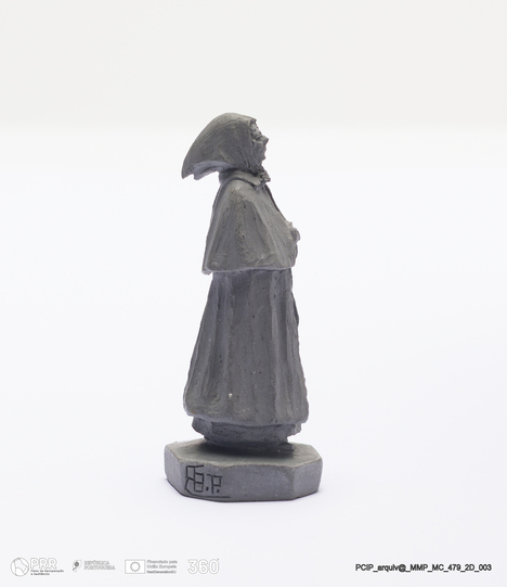 Matéria/Técnica: Barro cinzento modelado. Monocozedura; Cronologia: 1901; Autoria: Rafael Bordalo Pinheiro / Fábrica de Faianças das Caldas da Rainha, Portugal; Dimensões (cm): Altura: 4; Largura: 2; Comprimento: 2.