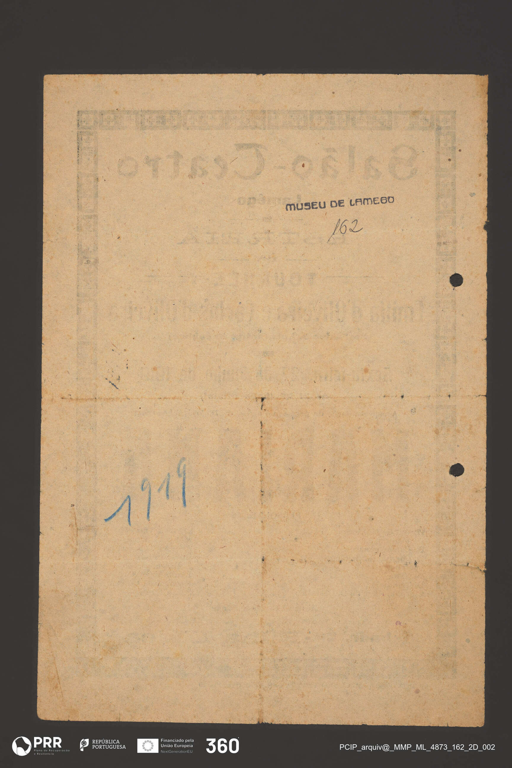 Matéria/Técnica: Impressão; Cronologia: 1919; Autoria: Desconhecida; Dimensões (cm): Altura: 27,8 x Comprimento: 19,1.