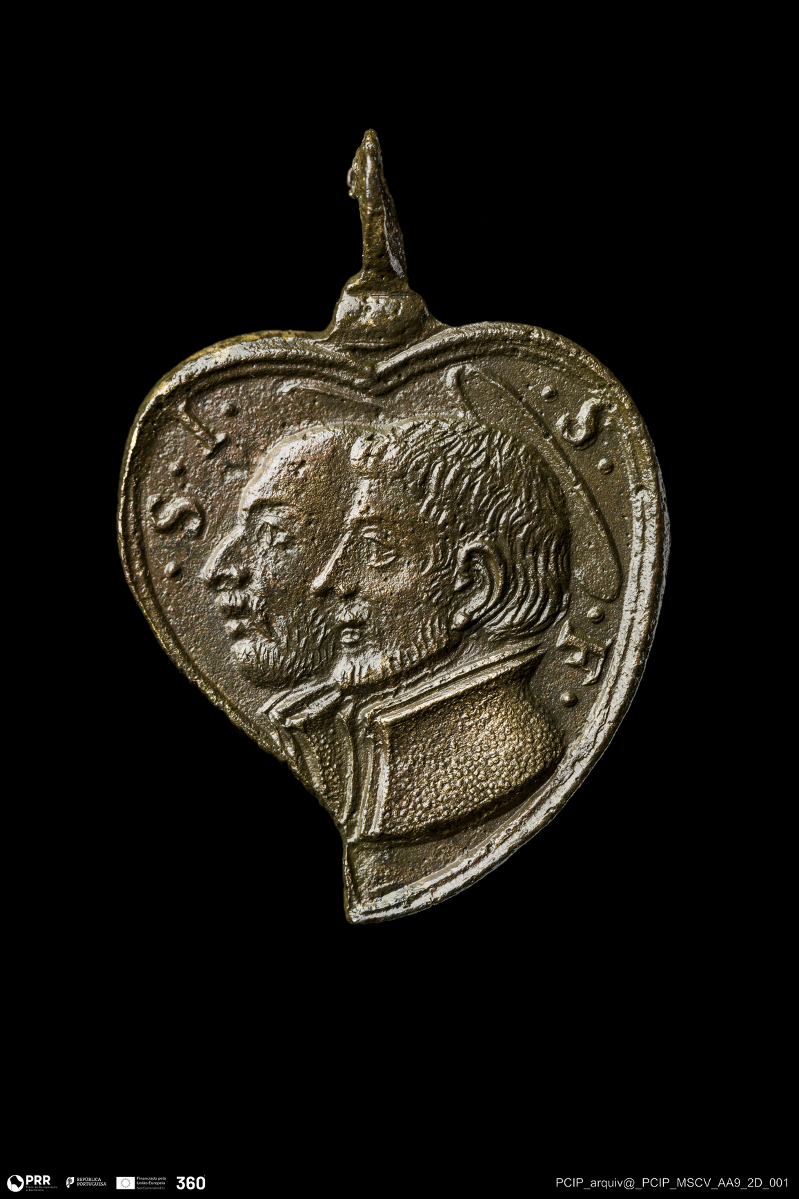 Matéria/Técnica: Liga de cobre; Cronologia: Século XVII; Autoria: Desconhecida; Dimensões: Largura: 19mm Altura: 20mm.