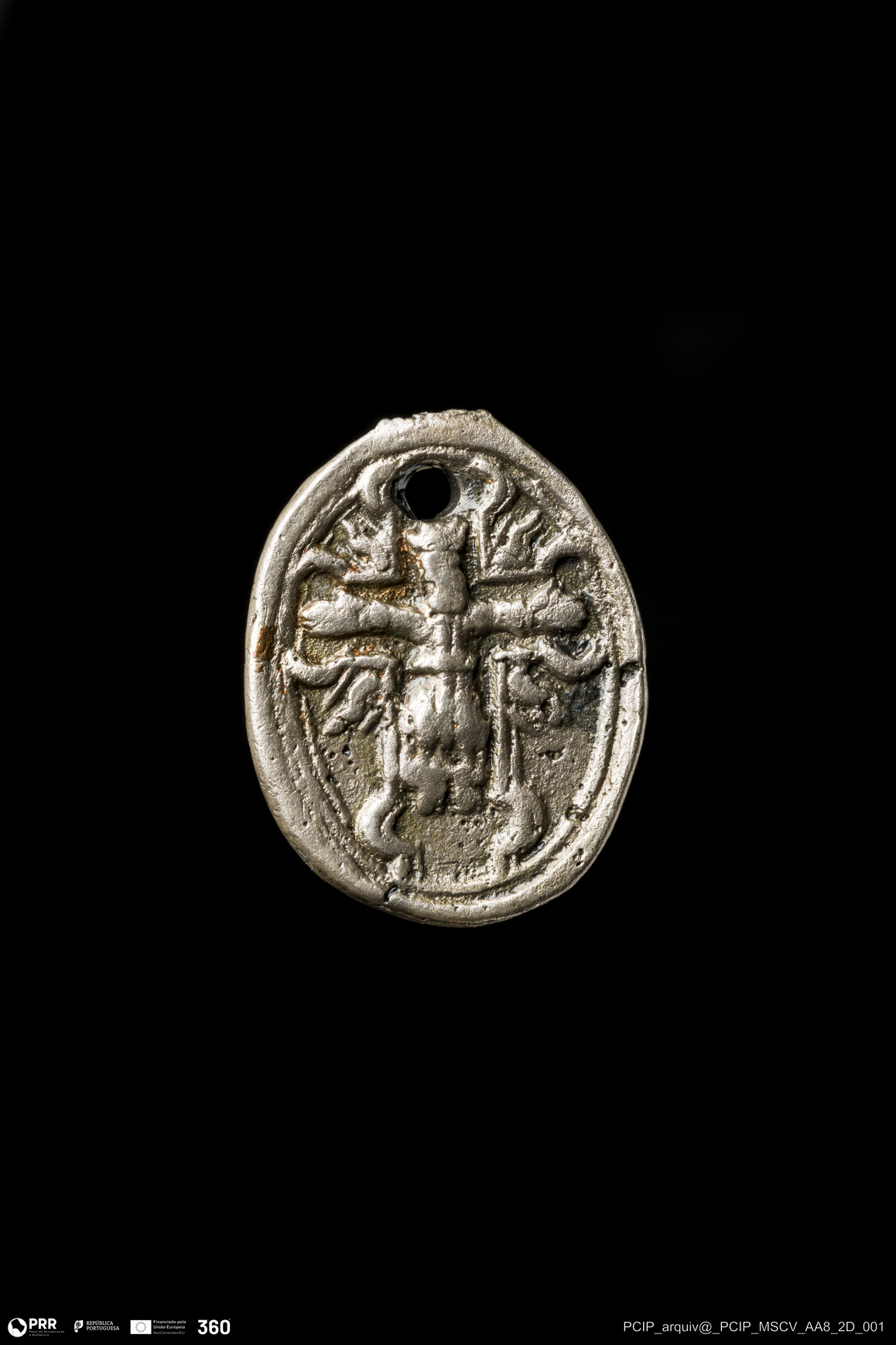 Matéria/Técnica: Prata; Cronologia: Século XVI-XVII (?); Autoria: Desconhecida; Dimensões: Largura: 10mm Altura: 14mm.