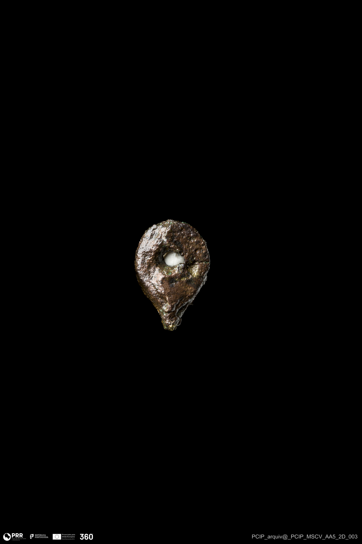 Matéria/Técnica: Liga de cobre; Cronologia: Final do Século XVI - Anterior a 1597; Autoria: Desconhecida; Dimensões: Largura: 14mm; Altura/espessura: 17mm.