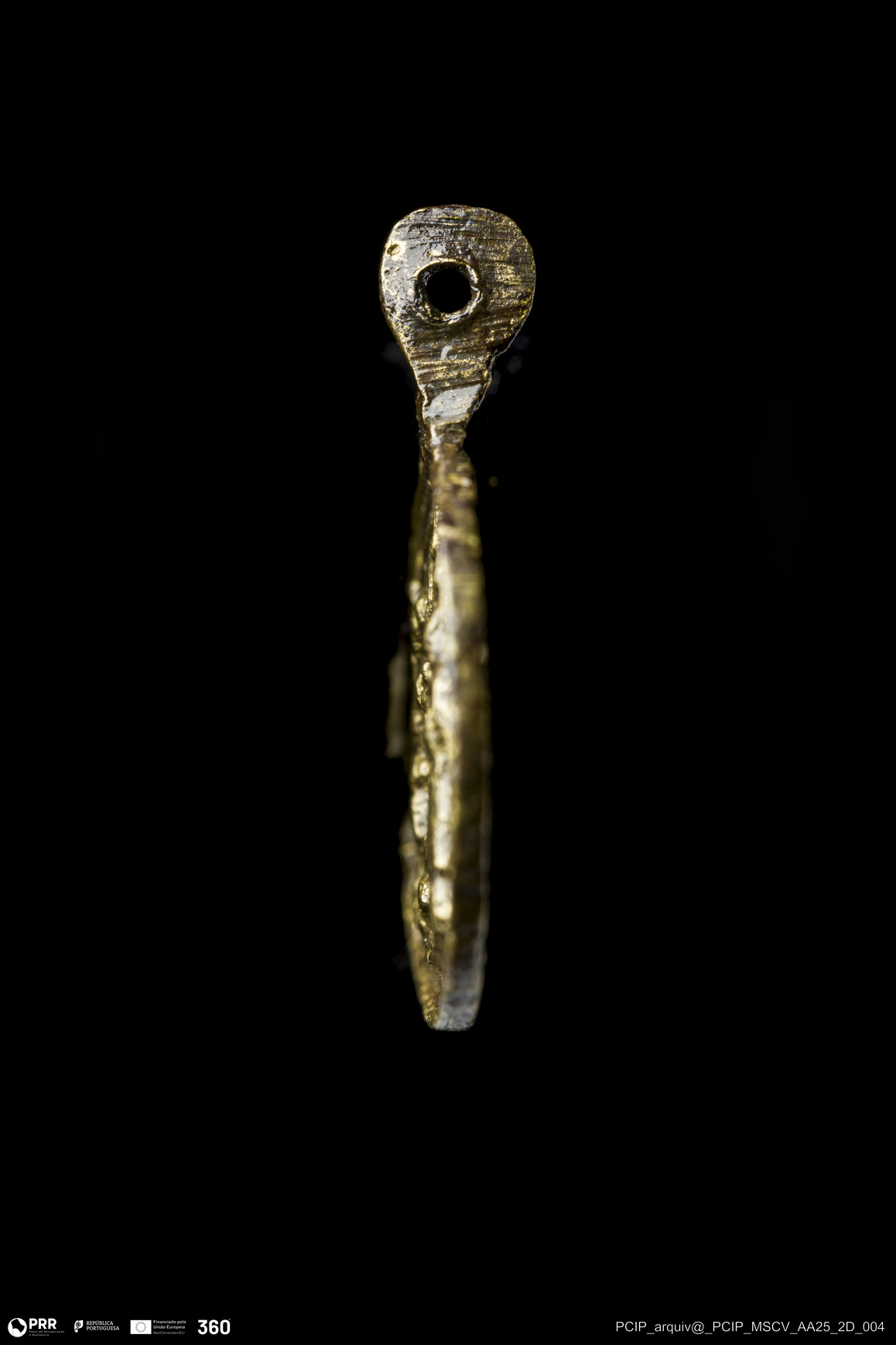 Matéria/Técnica: Liga de cobre; Cronologia: Final do século XVI- Início do Século XVII (?); Autoria: Desconhecida; Dimensões: Diâmetro: 15mm.