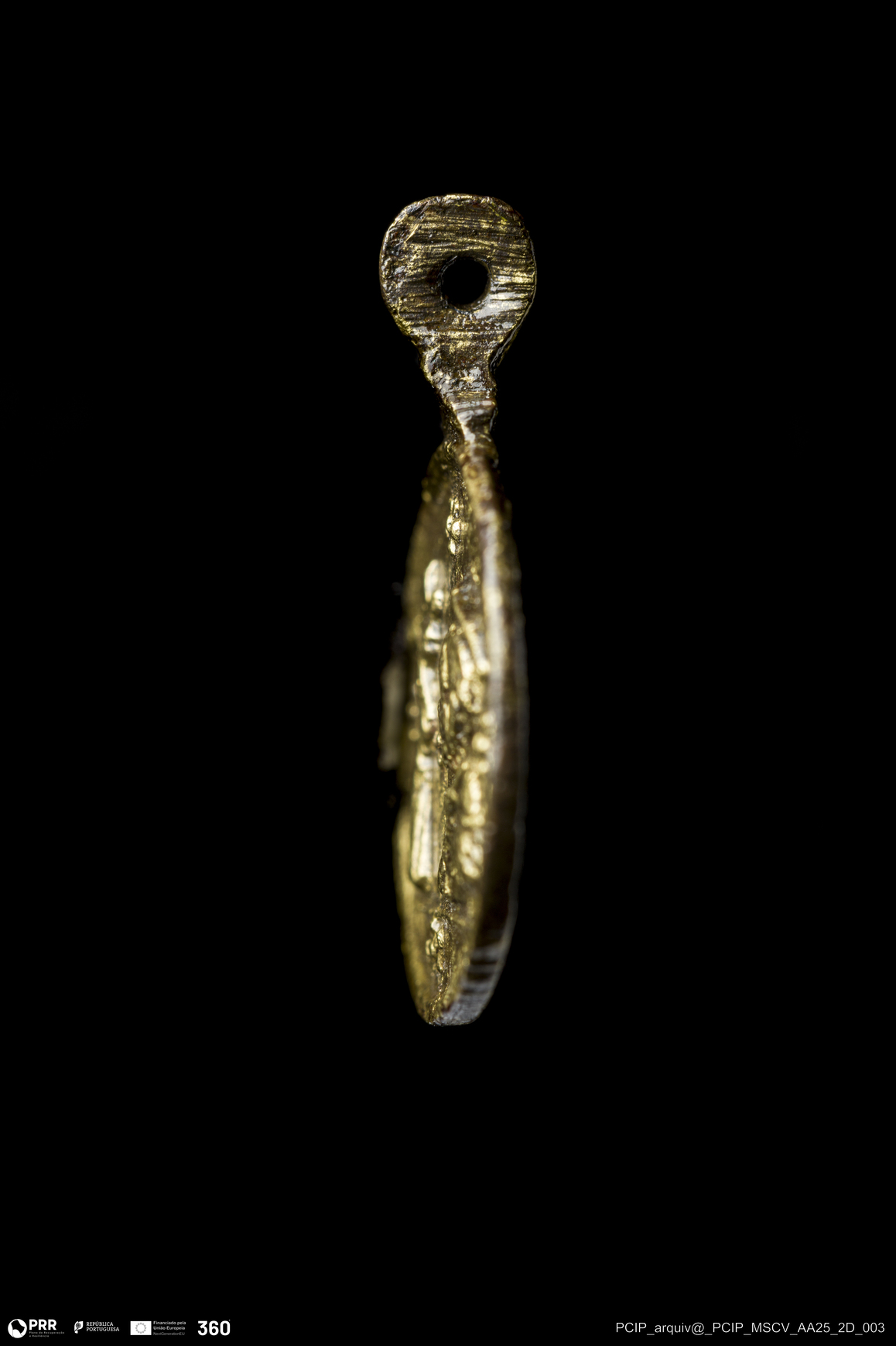 Matéria/Técnica: Liga de cobre; Cronologia: Final do século XVI- Início do Século XVII (?); Autoria: Desconhecida; Dimensões: Diâmetro: 15mm.
