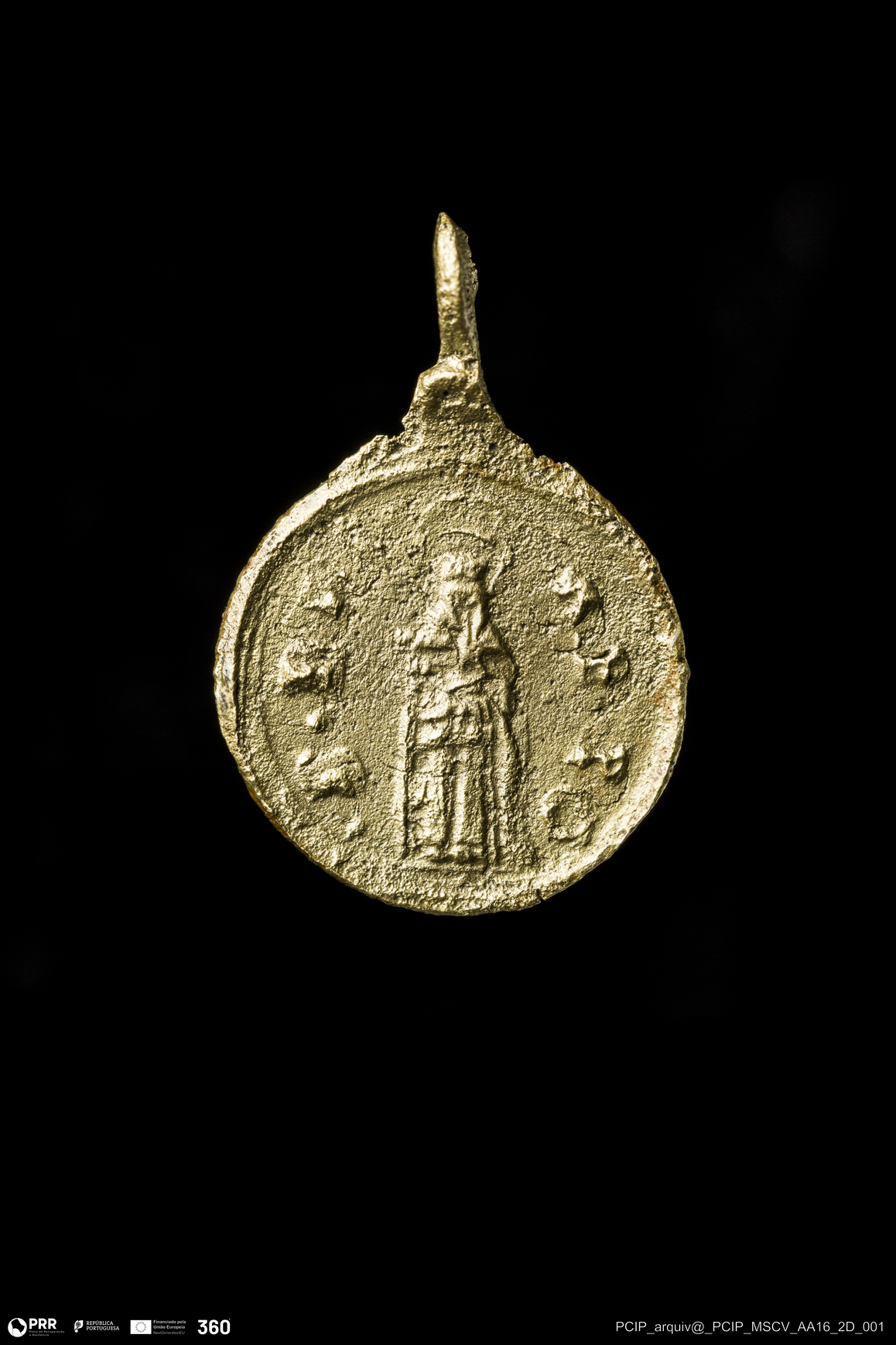Matéria/Técnica: Liga de cobre; Cronologia: Século XVII - 1625; Autoria: Desconhecida; Dimensões: Diâmetro: 12mm .