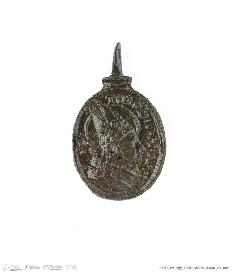 Matéria/Técnica: Liga de cobre; Cronologia: Século XVII; Autoria: Desconhecida; Dimensões: Largura: 15mm; Altura: 26mm; Espessura: 5mm.