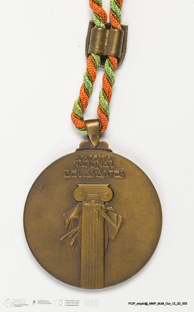 Matéria/Técnica: Bronze e seda; Cronologia: 1935; Autoria: João da Silva; Dimensões: Diâmetro: 4,6 cm.