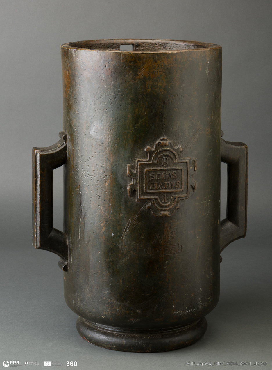 Matéria/Técnica: Bronze; Cronologia: Desconhecida; Autoria: Desconhecida; Dimensões: Altura: 47,00 cm; Diâmetro: 26,30 cm.