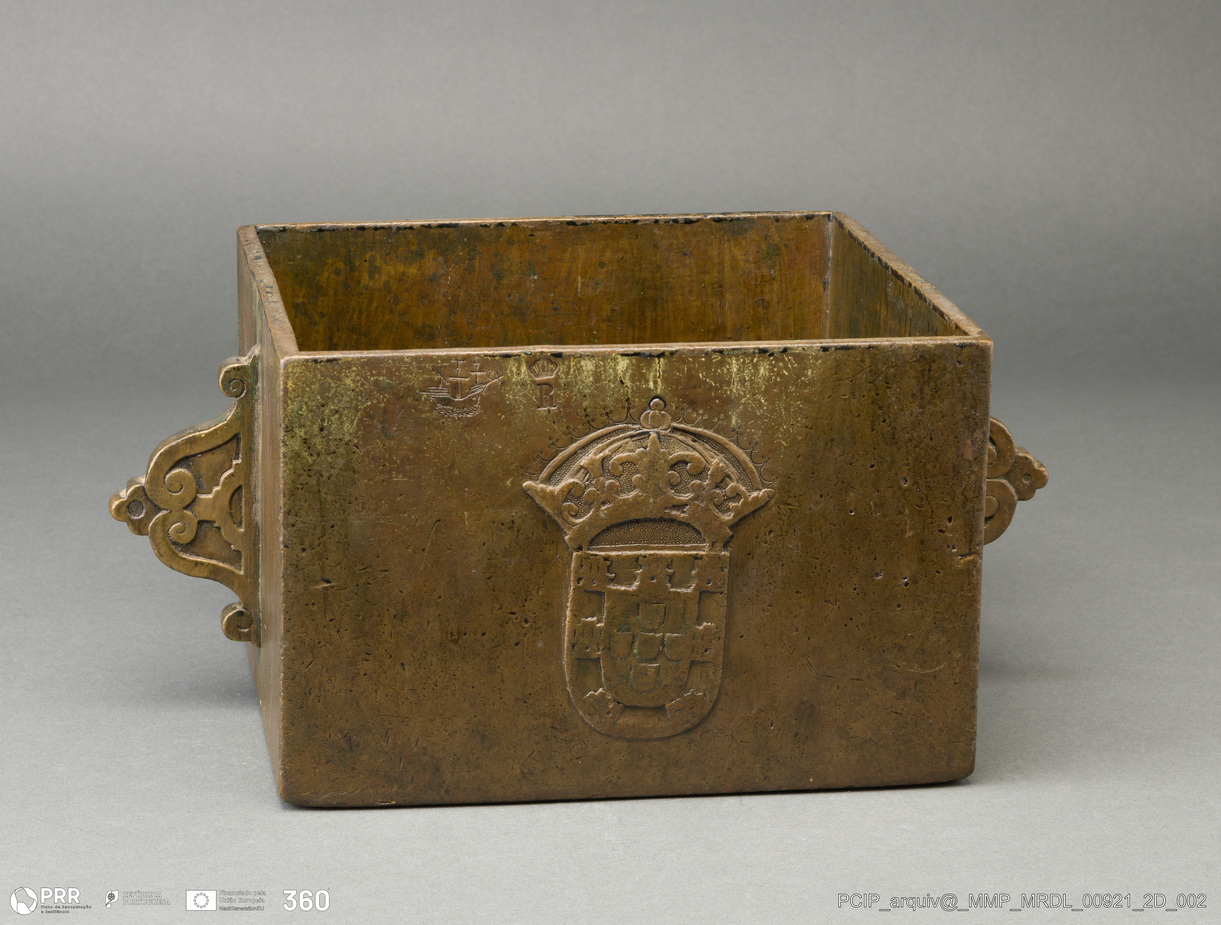 Matéria/Técnica: Bronze; Cronologia: Desconhecida; Autoria: Desconhecida; Dimensões: Altura: 15,20 cm; Largura: 22,90 cm; Comprimento: 22,80 cm.