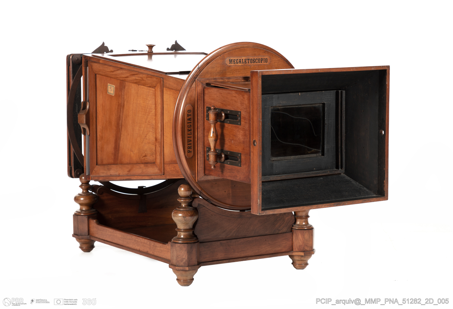 Matéria/Técnica: Madeira, metal, ferro, vidro, espelho; Cronologia: 1859 - 1862; Autoria: Ponti, Carlo; Dimensões (cm): Altura: 73; Largura: 90; Profundidade: 49.
