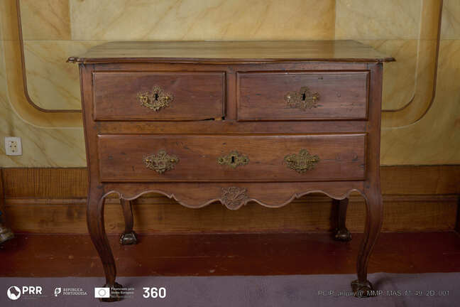 Matéria/Técnica: Madeira entalhada; Cronologia: Século XVIII; Autoria: Desconhecida; Dimensões (cm): Altura: 84,5; Largura: 64,5; Comprimento: 105.