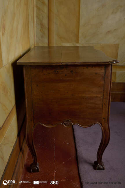 Matéria/Técnica: Madeira entalhada; Cronologia: Século XVIII; Autoria: Desconhecida; Dimensões (cm): Altura: 84,5; Largura: 64,5; Comprimento: 105.