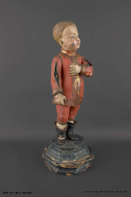 Matéria/Técnica: Escultura policromada; Cronologia: 1807-1810; Autoria: Desconhecida; Dimensões (cm): Altura: 50 x Largura: 18 x Profundidade: 16.